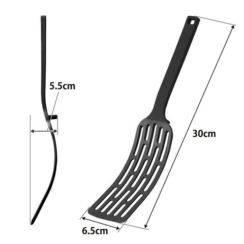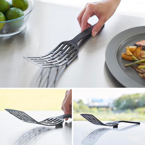 滑りにくく熱に強いシリコーン製のターナーです。ヘラ部分が一般的なターナーよりも少し長めになっており、魚や肉などの長さのある食材も綺麗にすくい、返すことができます。