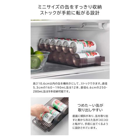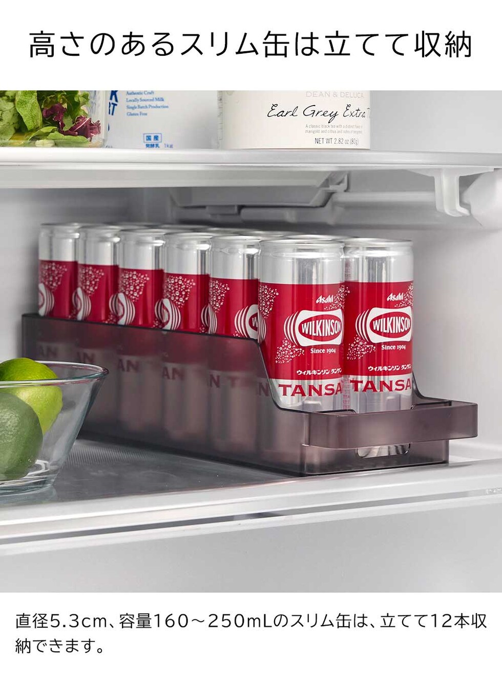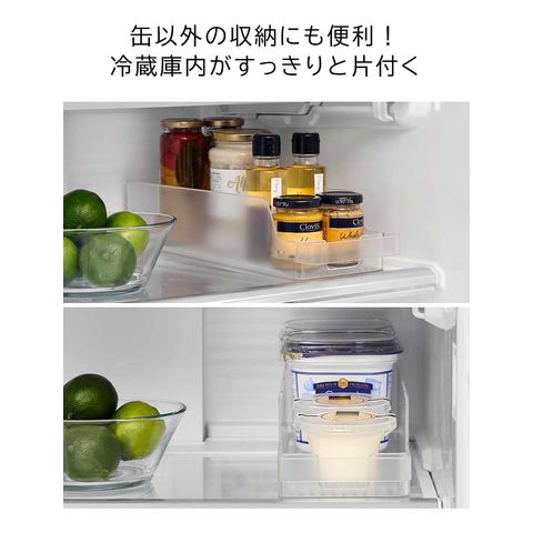 小さな缶のストック収納に ミニサイズのコーヒーやジュースの缶、スリムタイプのエナジードリンクの缶などを、 冷蔵庫にたくさん冷やして省スペースに収納できる缶ストッカー。 底面に傾斜があるので、缶を取り出すと奥から冷えた缶が 手前にコロコロと転がる設計になっています。 食器棚の整理収納にも使用可能。 マグボトルやお弁当箱などの収納にもおすすめです。 ![]() ![]() ![]() ![]() ![]() ![]() ![]() ![]() ![]() ![]() ![]() |