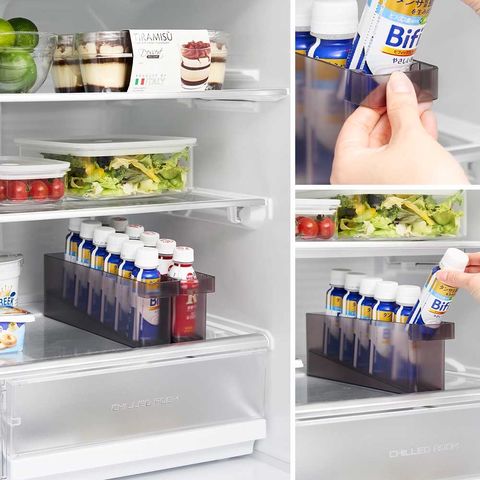 底面の傾斜で 乳酸菌飲料や瓶タイプのエナジードリンクなどのミニドリンクを、 冷蔵庫に省スペースに収納できるケース。 底面に傾斜があるので、冷えたボトルが奥から手前にスライドする設計になっています。 食器棚の収納アイテムとしても使用可能。 タッパーの蓋など細々した小物の整理整頓におすすめです。 ![]() ![]() ![]() ![]() ![]() ![]() ![]() ![]() ![]() ![]() |