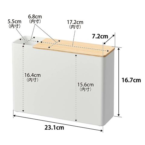 内寸サイズ ハンディーワイパー収納部:W5.5×D6.8×H16.4cm 替えモップ収納部:W17.2×D6.8×H15.6cm |