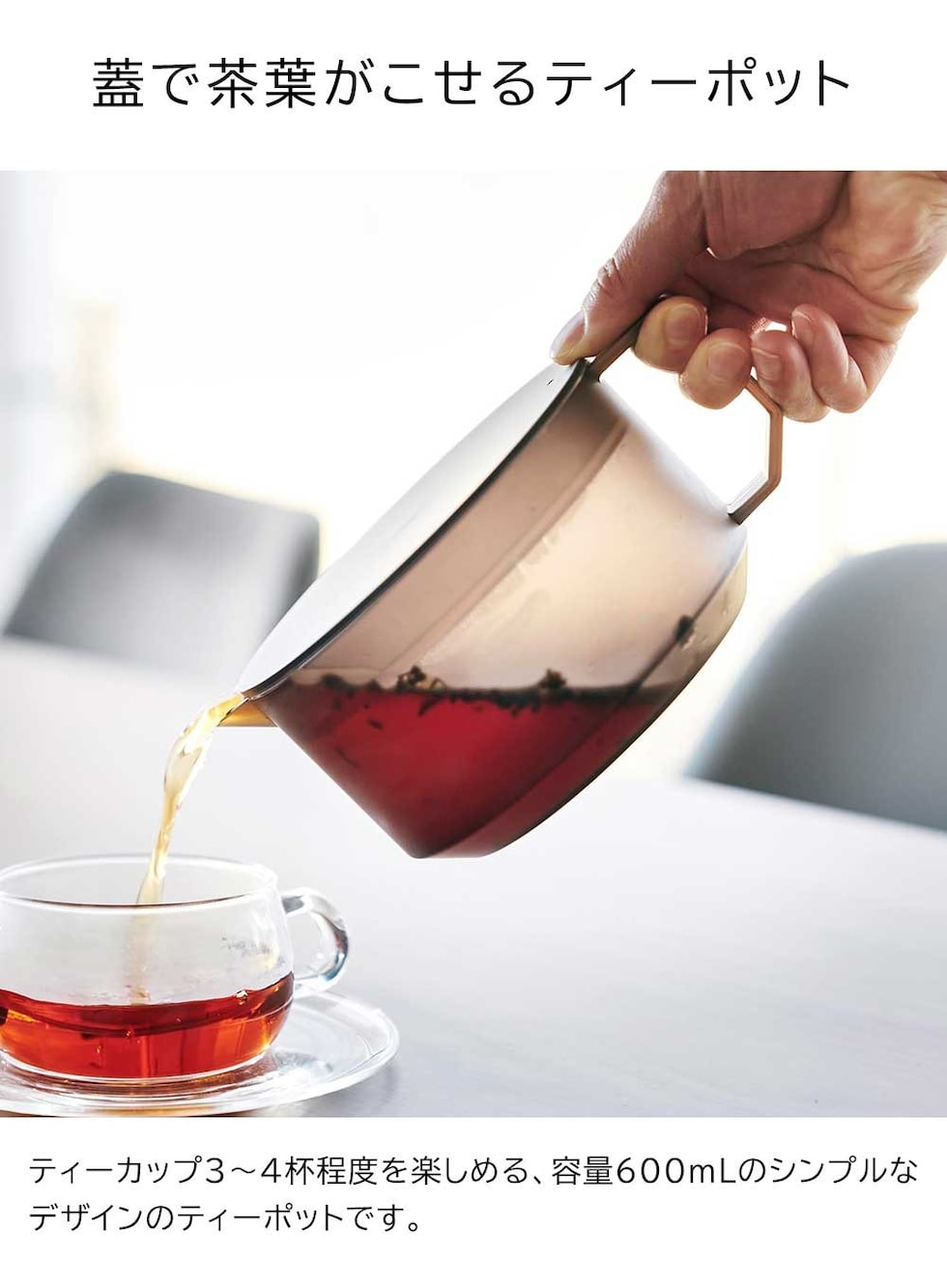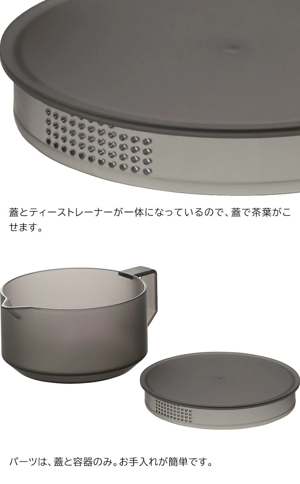 ストレーナーと蓋が一体型で 蓋で茶葉をこせるシンプルなデザインのティーポット。 容量600mLで、ティーカップ3~4杯分を淹れる事ができます。 蓋とティーストレーナーが一体になっていてパーツが少なく、食洗機にも対応しているのでお手入れが簡単です。 熱に強く電子レンジで飲み物を温めることができます。 ポットの高さが7.9cmと低く、蓋がフラットだから冷蔵庫で保管しやすい形状です。 丈夫なコポリエステル樹脂を使用しているので落としても割れにくく安心です。 ![]() ![]() ![]() ![]() ![]() ![]() ![]() ![]() ![]() ![]() ![]() ![]() |