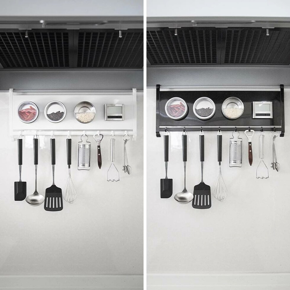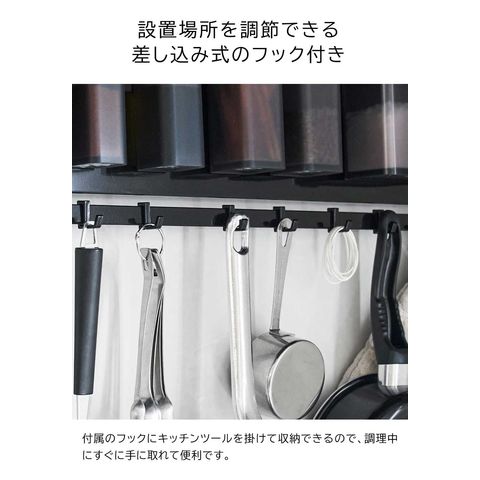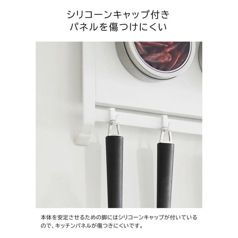 パネル下のフックにキッチンツールを引っ掛けて収納できるので、