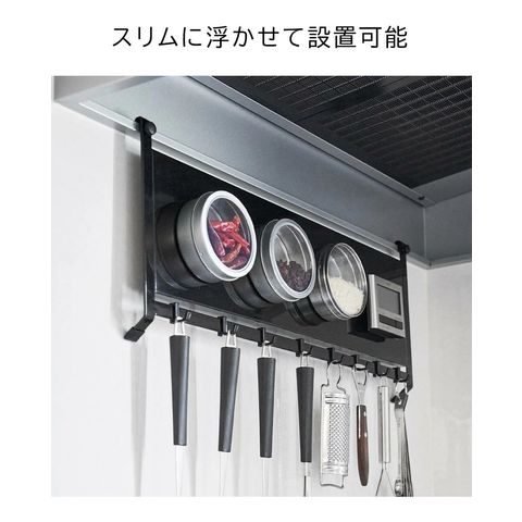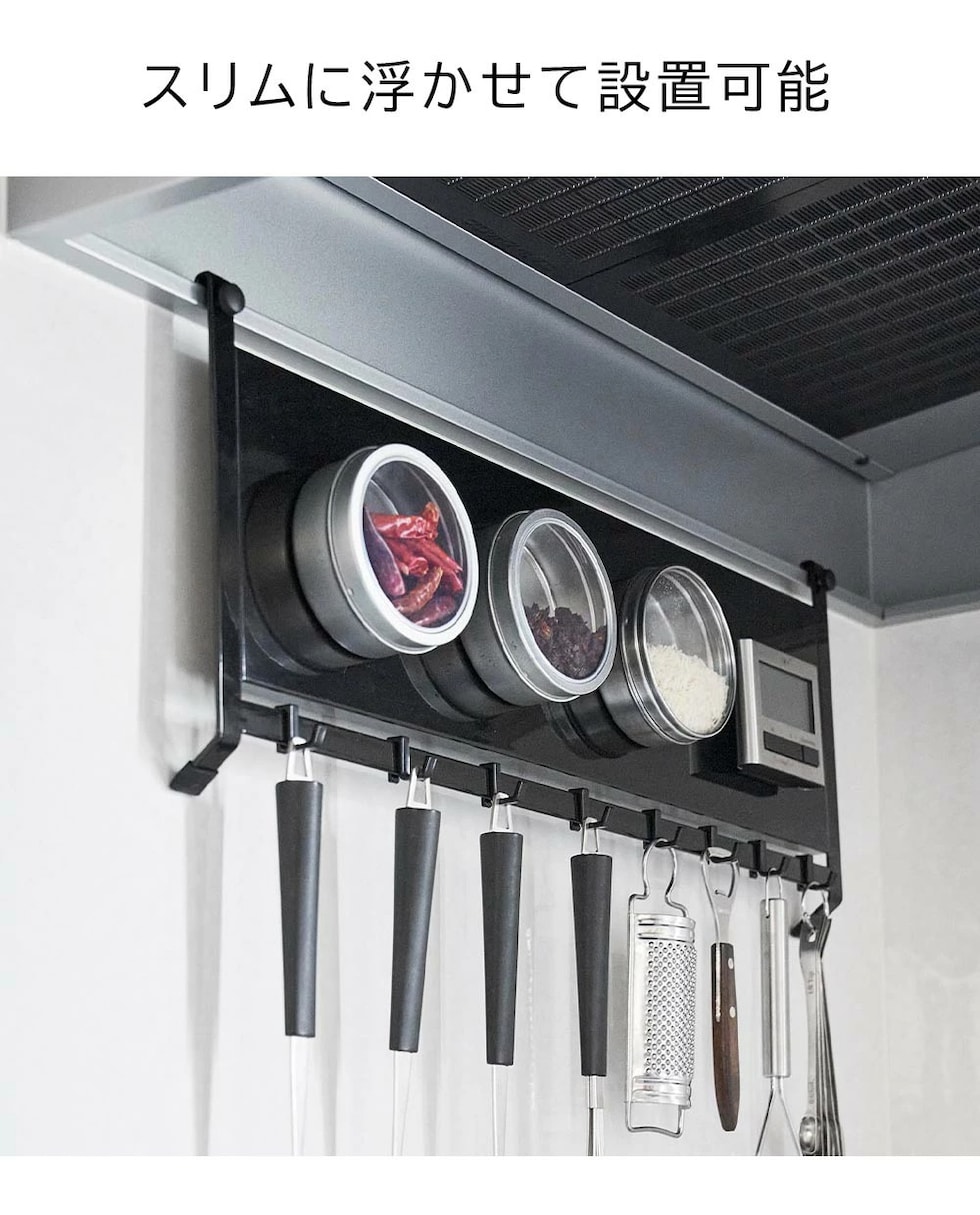 レンジフードの折り返し部分に引っ掛けてネジで固定するだけなので賃貸でも使え、