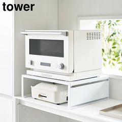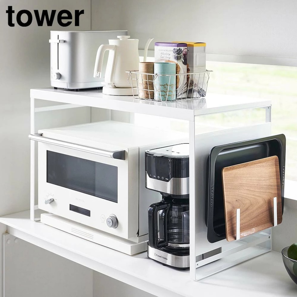 スチールパネル付きレンジラック タワー W75 山崎実業 tower ホワイト ブラック 1483 1484 レンジラック レンジ上ラック キッチンラック ラック スチールパネル 電子レンジ 収納 レンジ上 キッチン家電 省スペース おしゃれ シンプル タワーシリーズ[MM1]