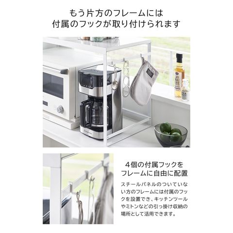 また、スチールパネルの付いていない側のフレームに付属のフックを取り付けると引っ掛け収納が可能に。