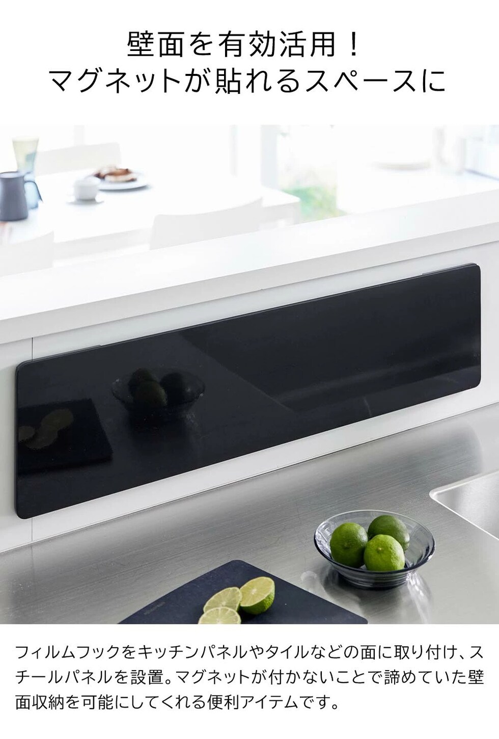 フィルムフックスチールパネル タワー ワイド 山崎実業 tower ホワイト ブラック 1512 1513 スチールパネル キッチンパネル マグネットパネル 幅80cm 壁面収納 引っ掛け 浮かせる収納 収納 マグネットが付く おしゃれ シンプル 公式 yamazaki タワーシリーズ[MM1]