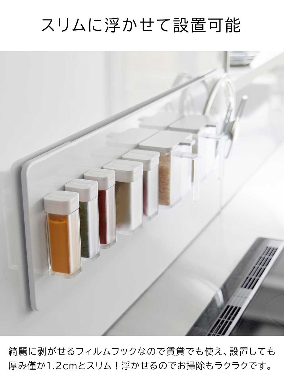 綺麗に剥がせるフィルムフックなので賃貸でも気軽に使え、厚み1.2cmとスリムに設置できます。