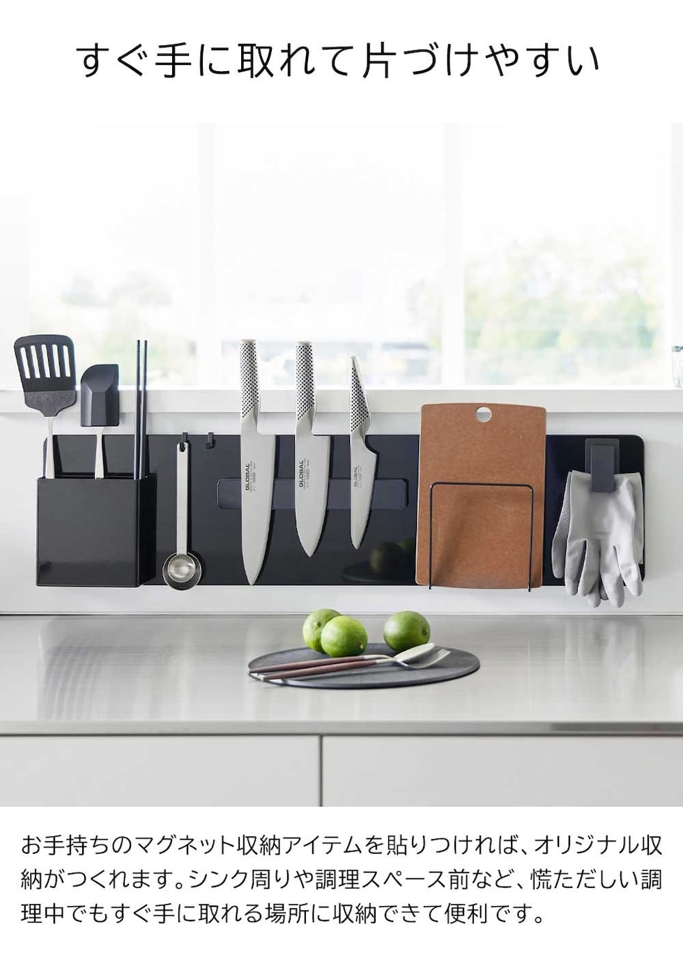 すぐに手に取れ、片づけやすい場所にパネルを設置して、お手持ちのマグネット収納アイテムを貼りつければ、自分だけのオリジナル収納がつくれます。