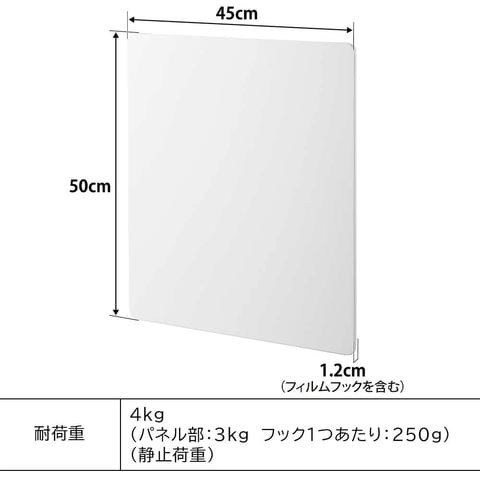 耐荷重 4kg(パネル部:3kg フック1つあたり:250g) (静止荷重) |