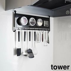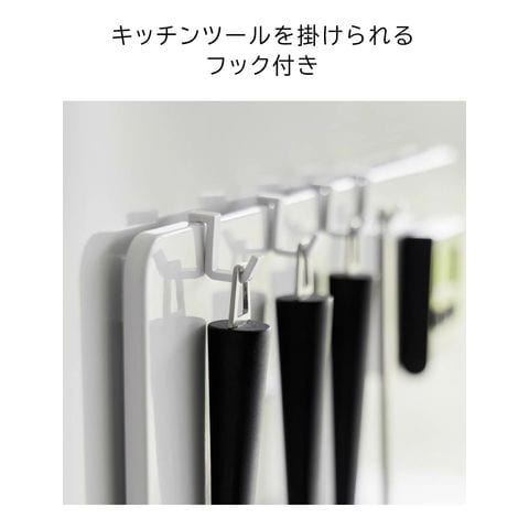 付属のフックにキッチン小物を掛ければ更に収納力アップ。
