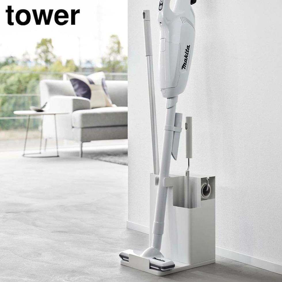 スティッククリーナー&ツールオーガナイザー タワー 山崎実業 tower ホワイト ブラック 1553 1554 コードレスクリーナースタンド スタンド カーペットクリーナー フローリングワイパー 掃除機 収納 おしゃれ シンプル 公式 yamazaki タワーシリーズ[MM1]