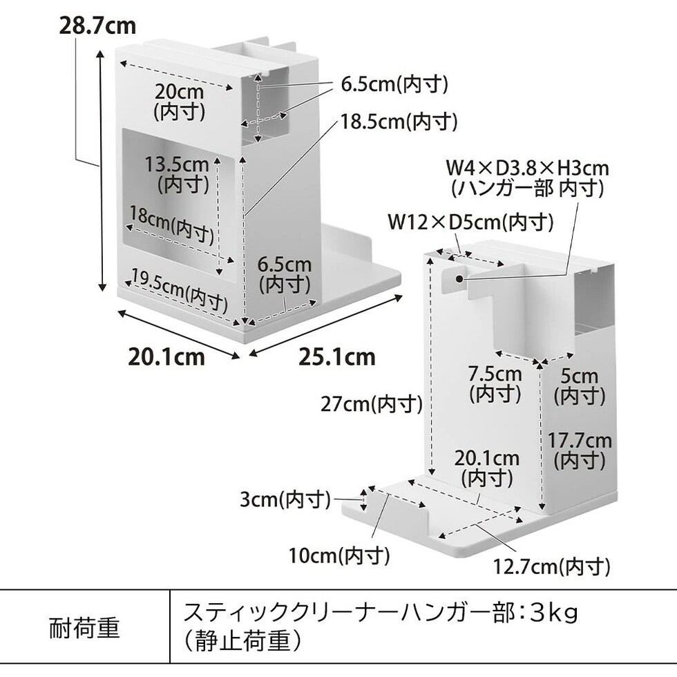 耐荷重 スティッククリーナーハンガー部:3kg(静止荷重) |