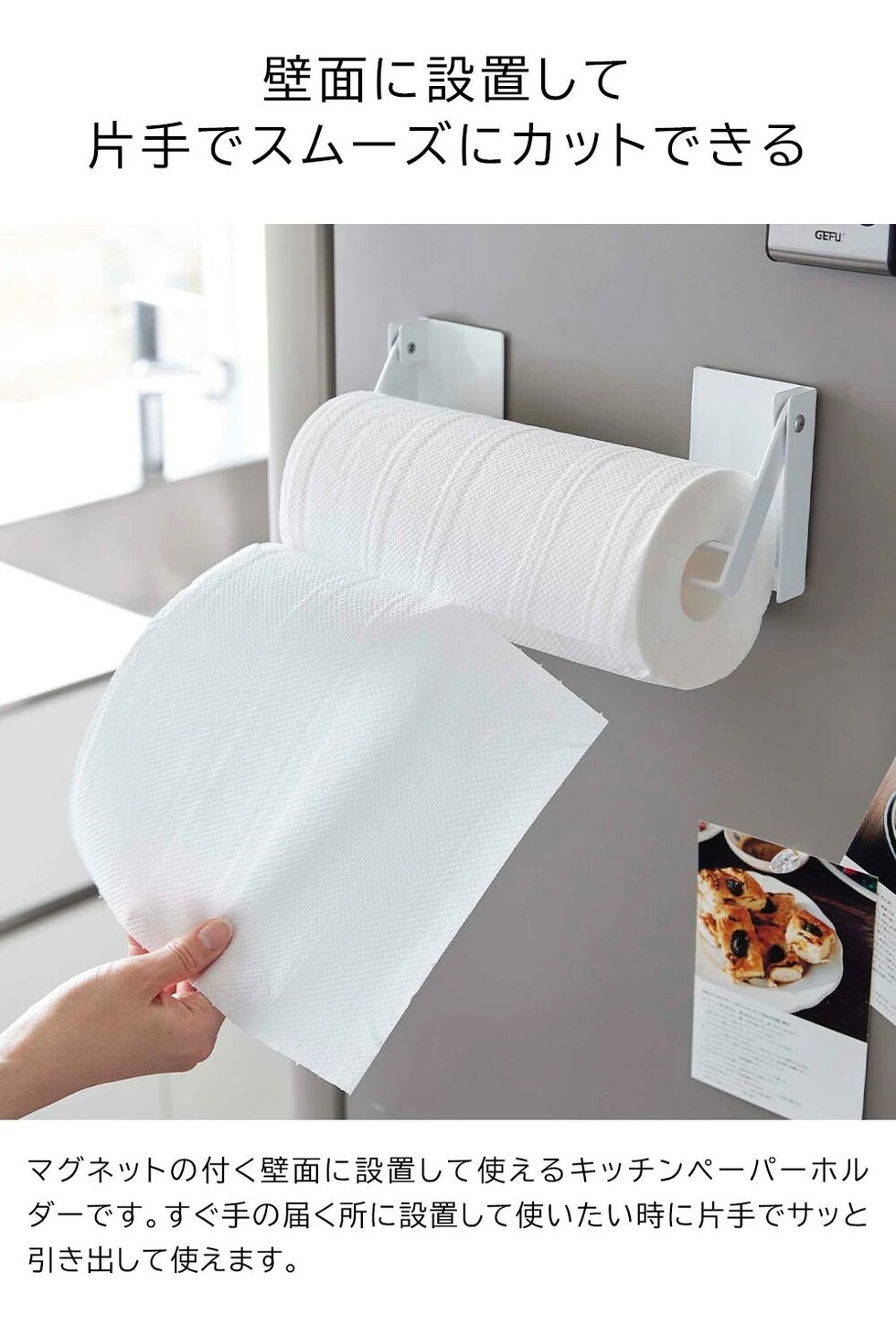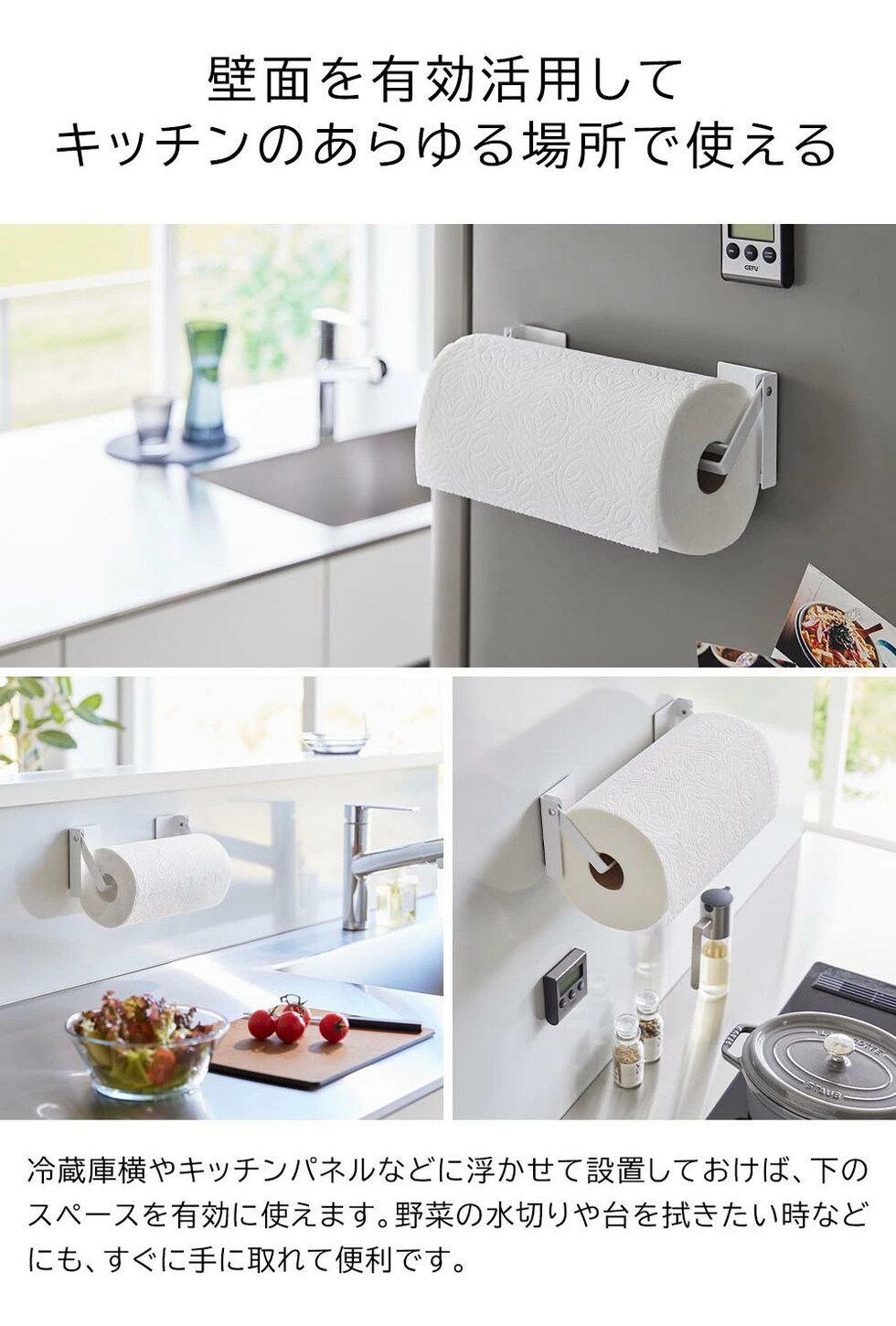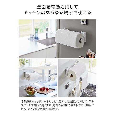 ■使用できる面 マグネットがつく平らな面・スチール面 ※キッチンペーパーロールは付属しておりません。 |