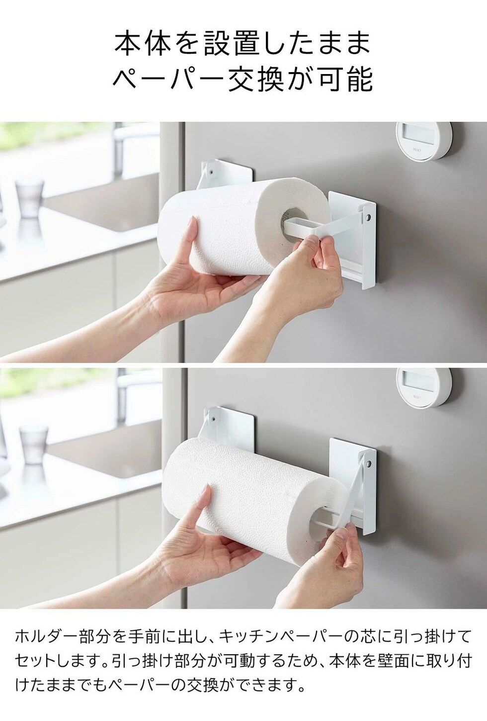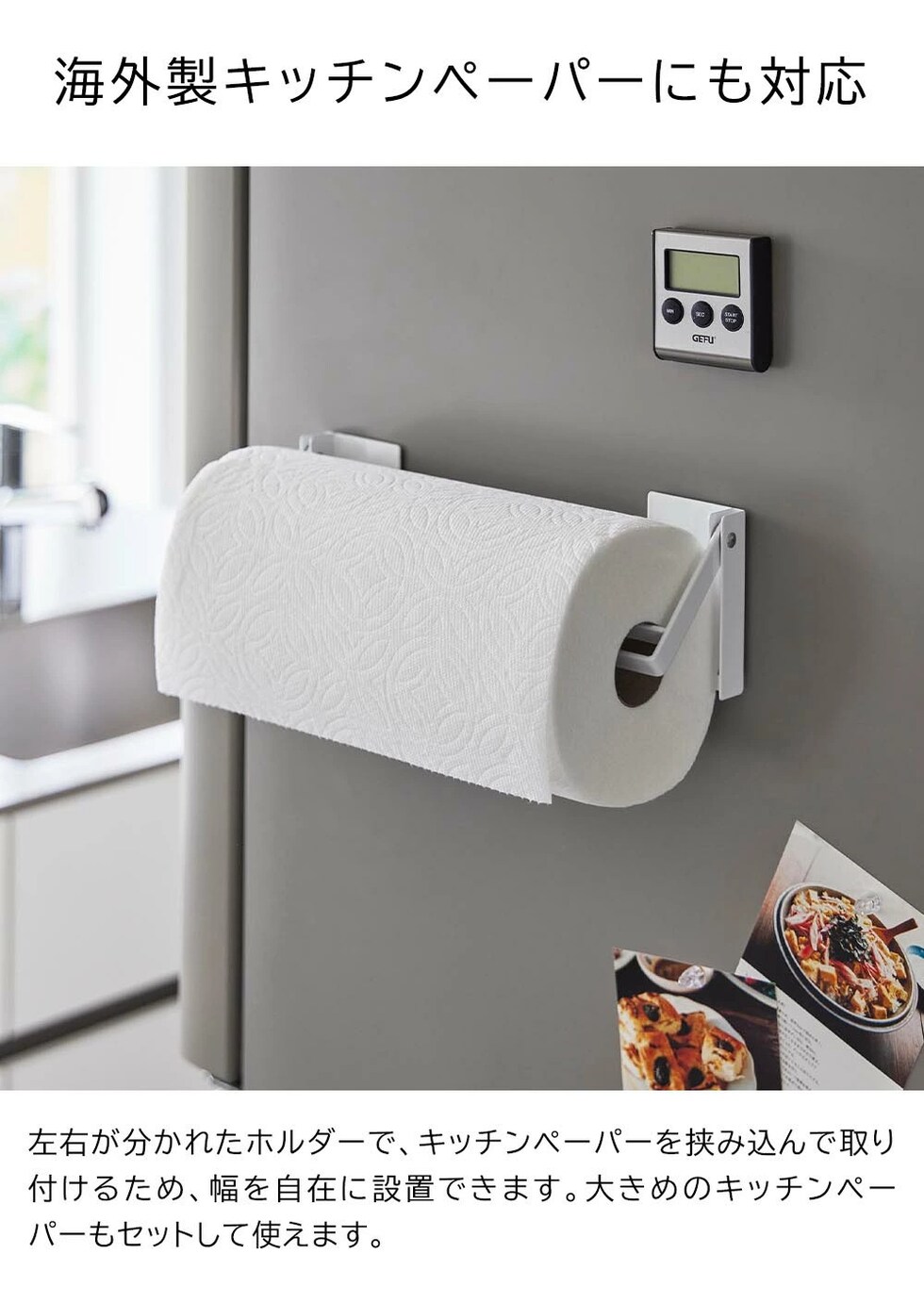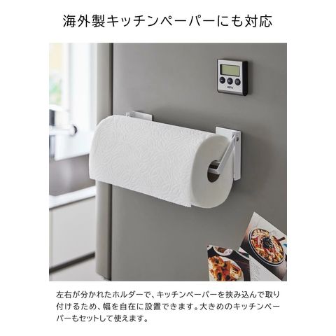 ペーパーの幅に合わせて設置 キッチンパネルや冷蔵庫のマグネットがつく壁面に、貼り付けるだけで簡単設置。 片手でラクにカットできるキッチンペーパーホルダーです。 ホルダー本体が左右に分かれているので、キッチンペーパーの幅に合わせて設置が可能。 海外製の大きなキッチンペーパーにも対応しています。 キッチンペーパーを引っ掛けるホルダー部分は可動式のため、壁面に設置したままラクに交換できます。 ![]() ![]() ![]() ![]() ![]() ![]() ![]() ![]() ![]() ![]() ![]() ![]() ![]() ![]() |