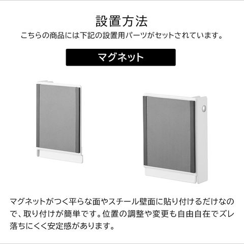 品質表示 本体:スチール(粉体塗装) マグネット ストッパー・滑り止め:シリコーン |
