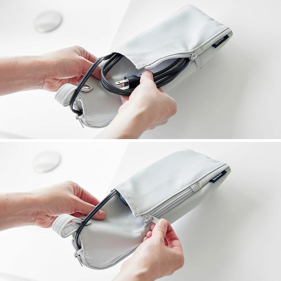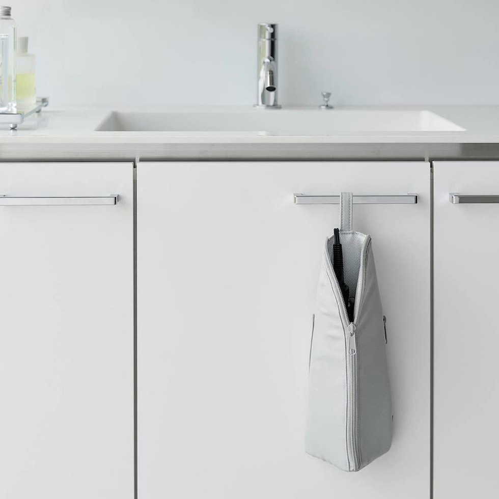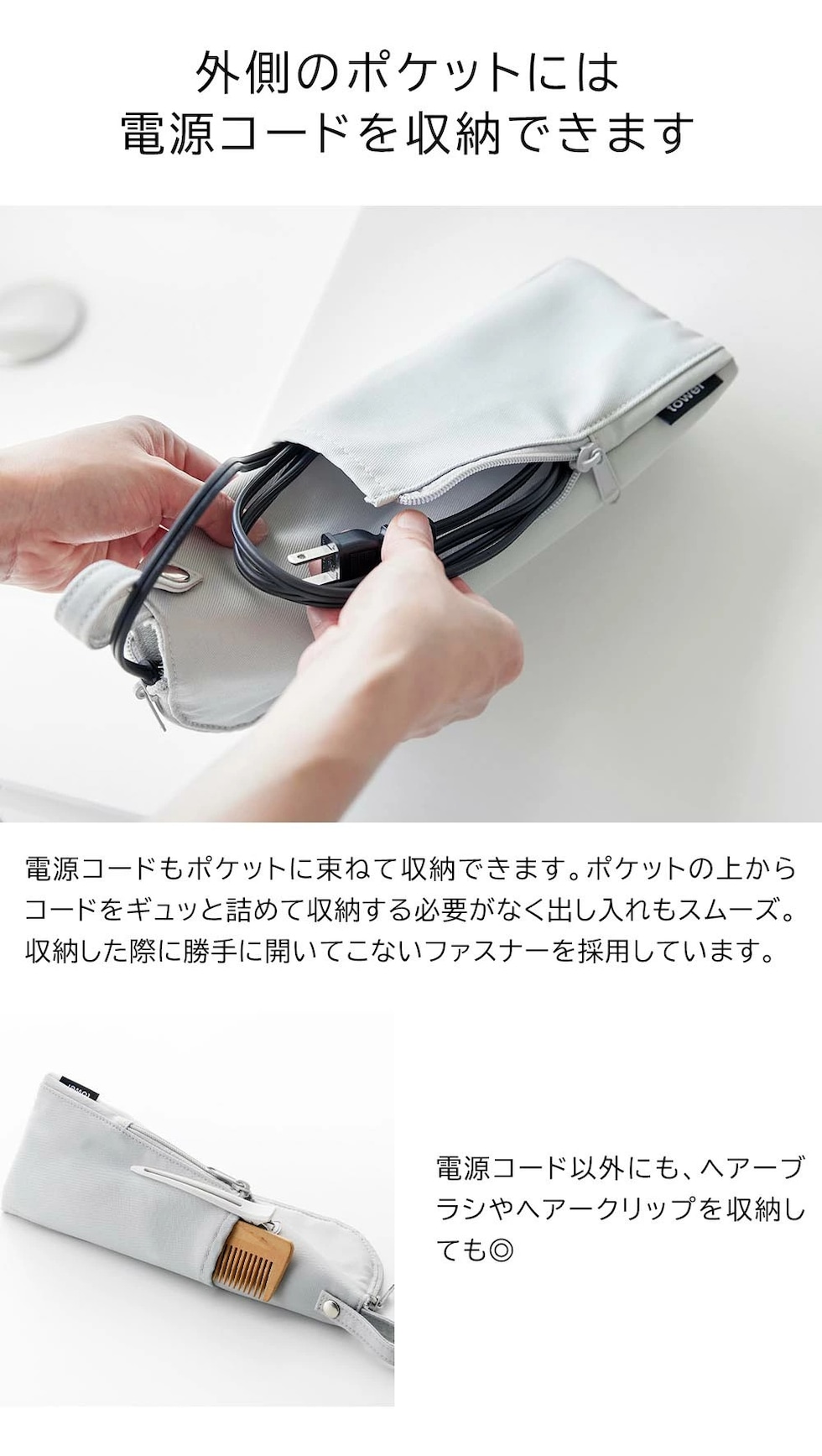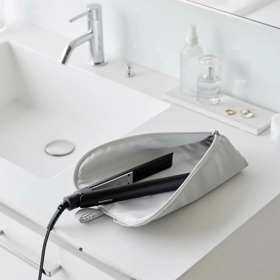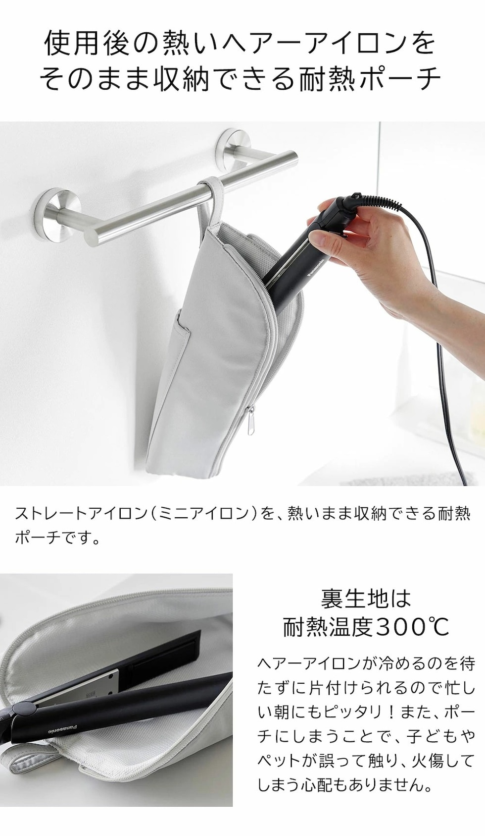 使用後のヘアーアイロンを ストレートアイロン(ミニアイロン)を、熱いまま収納できる耐熱ポーチです。冷めるのを待たずに片付けられるので、忙しい朝にもピッタリ!ポーチに収納することで子どもやペットが誤って触り、火傷してしまう心配もありません。 ポーチはストラップ付き。ストラップをタオルバーやハンドルなどに巻きつけてボタンを留めるだけで吊り下げ収納ができます。浮かせることで狭い洗面まわりでも場所をとらず、出し入れもサッとスムーズにできて便利です。 ポーチはファスナーで開閉。開け方を調整すれば、ヘアーアイロンホルダーや、一時置きとして使えます。旅行などで持ち運びする際には上まで閉めると、ヘアーアイロンの飛び出し防止にもなります。外側のポケットにはゴチャつきがちな電源コードを束ねて収納でき、ファスナーが付いているので電源コードの出し入れもラクにできます。 ![]() ![]() ![]() ![]() ![]() ![]() ![]() ![]() ![]() ![]() ![]() ![]() ![]() ![]() ![]() |