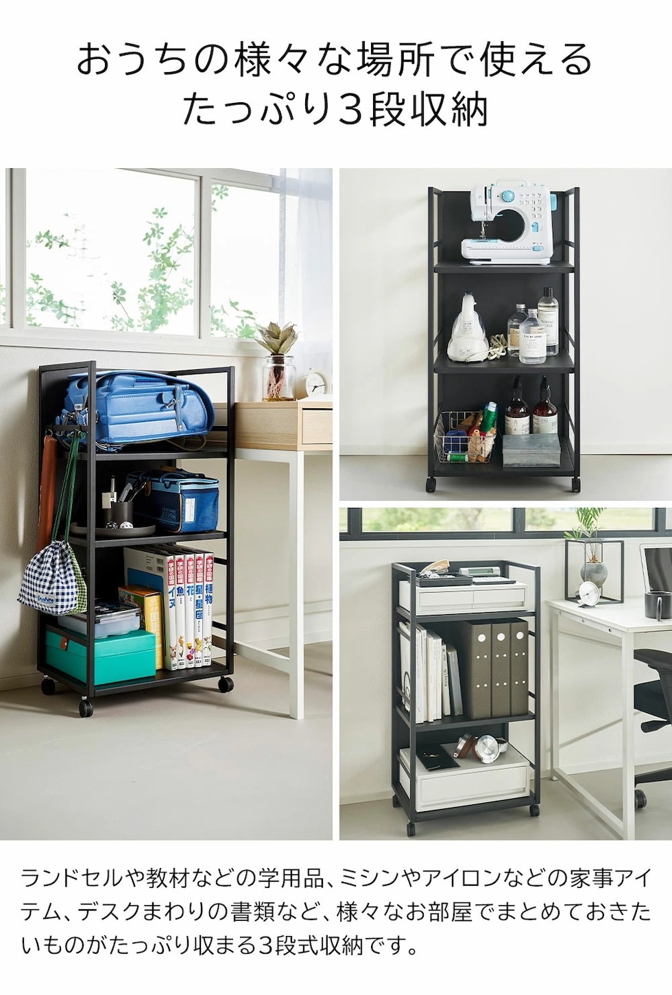 3段ワゴンにたっぷり収納 子供部屋やリビングでかさばる大物をきちんと整理整頓できる3段ワゴン。 収納する物に合わせて棚の高さを選べ、本や教材はもちろん、置き場所に困りがちなランドセルや絵具、アイロンやミシンなどをスッキリ収納できます。 ハンドルとキャスターで移動もラクラク。 たっぷり収納していても、片面スチールパネルでクルッと返せば生活感をすばやく目隠しできます。 付属のフックを使えば、小物の引っ掛け収納に便利です。 ![]() ![]() ![]() ![]() ![]() ![]() ![]() ![]() ![]() ![]() ![]() ![]() ![]() |