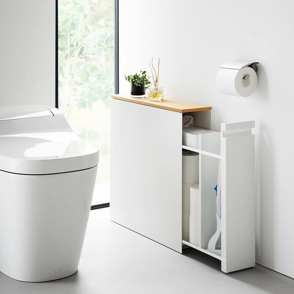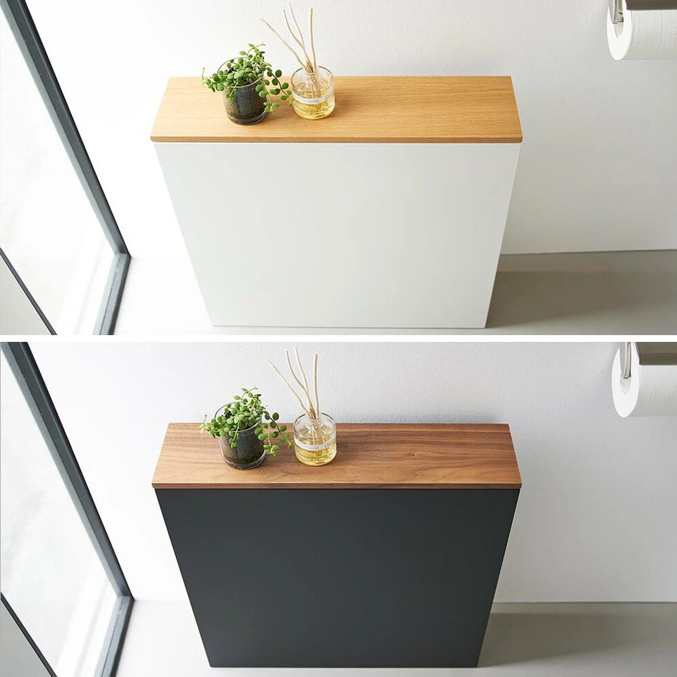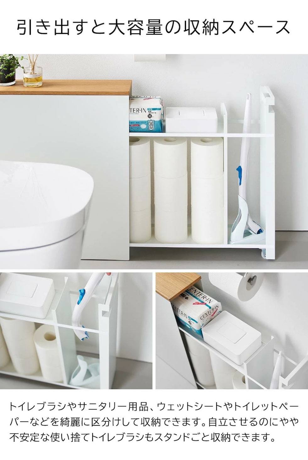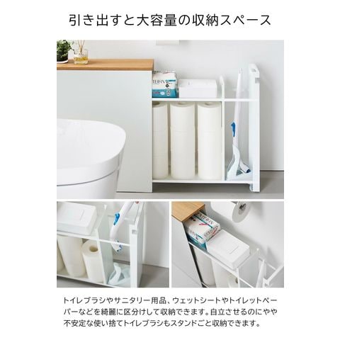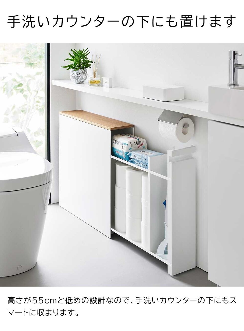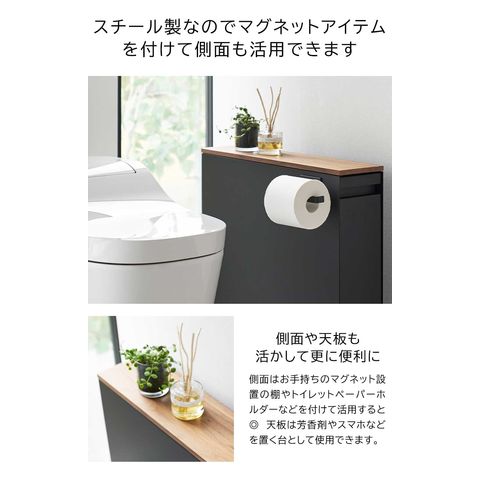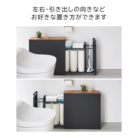 トイレ用品を省スペースに トイレの狭い空間でも、様々なトイレ用品の一括収納ができるスリムな引き出し式ラックです。 幅僅か14cmの細長いラックで、トイレブラシやサニタリー用品、トイレットペーパーなどを綺麗に区分けして収納できます。 トイレブラシ収納部は使い捨てトイレブラシにも対応。 キャスター付きの引き出しで、使わない時は全ての小物を隠せ、スッキリとしたトイレ空間になります。高さが55cmと低めに設計されているので、手洗いカウンターの下にも収まります。 天板は天然木でできており、シンプルでスタイリッシュ!芳香剤やインテリア、スマホなどを一時置きする台としても使え、大変便利です。 スチール製なので、側面にお手持ちのマグネット収納アイテムなどを取り付けて、更に収納の幅を広げるのも◎ 本体の底面には底板があり、ホコリなどが下から引き出しの中に侵入するのを防ぎます。 ![]() ![]() ![]() ![]() ![]() ![]() ![]() ![]() ![]() ![]() ![]() ![]() ![]() ![]() ![]() ![]() |