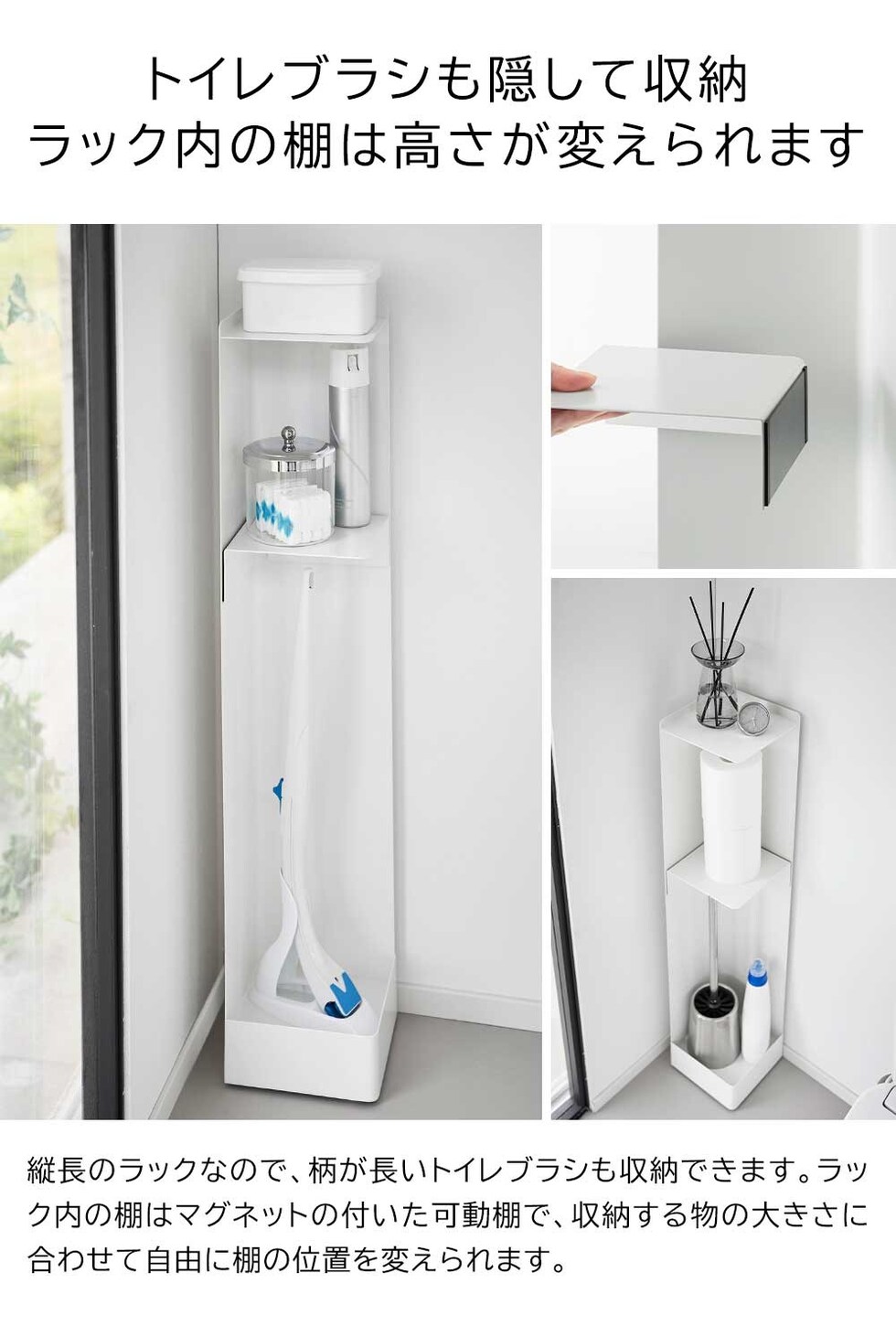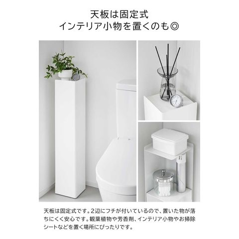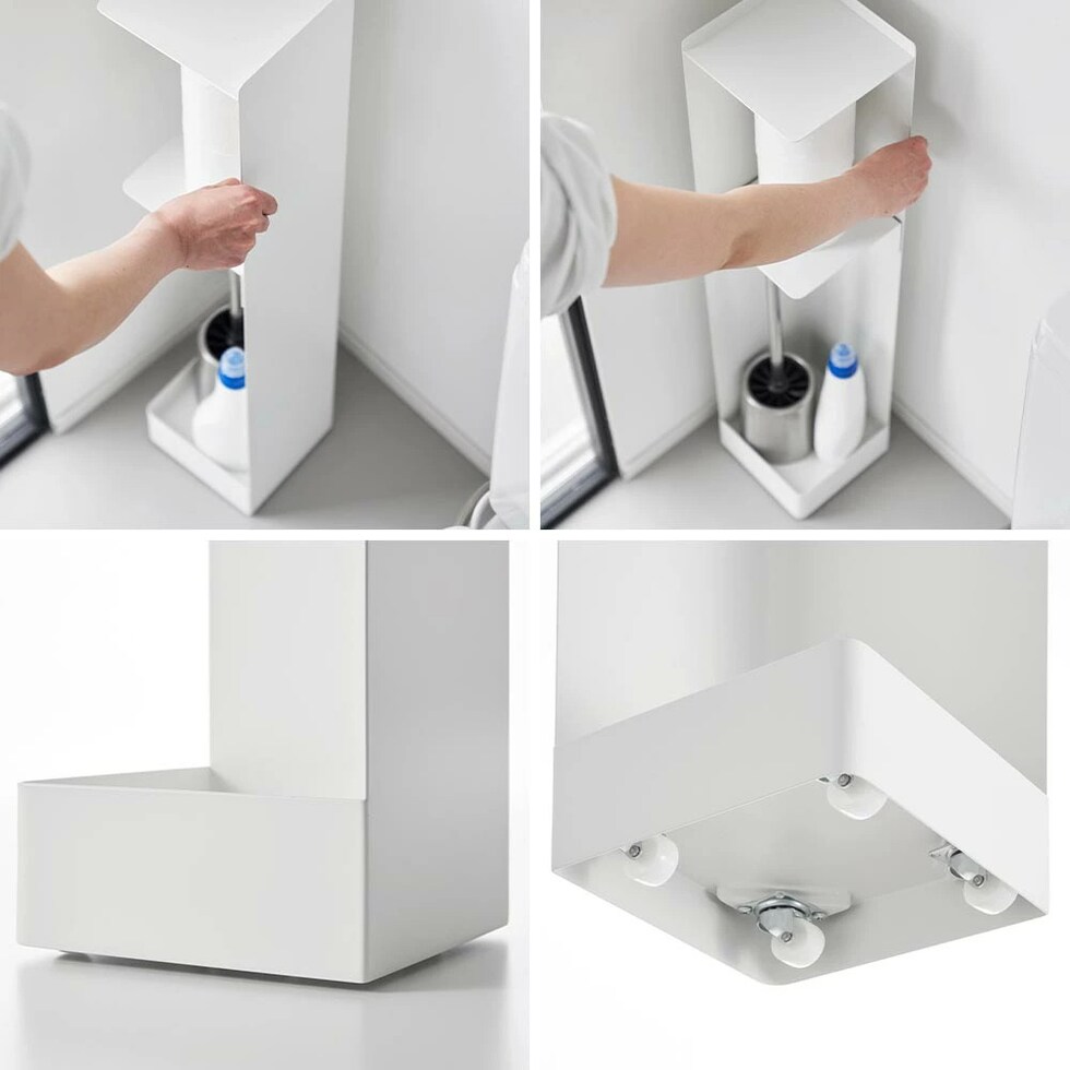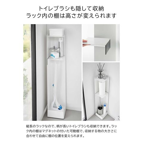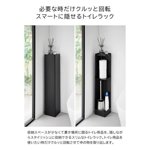 トイレ用品を隠して収納! トイレ用品を隠しながら収納できる、とてもスリムなトイレラックです。限られた空間の中でも邪魔にならずにスマートに設置でき、シンプルな外観で生活感を一掃します。 トイレ用品を使いたい時だけクルッと回して中の物を取り出します。縦長のラックなので長いトイレブラシも収納できます。 ラック内の棚は位置を自由に変えられるマグネットタイプ。トイレットペーパーや消臭スプレー、サニタリー用品など、収納したい物の大きさに合わせて棚の高さを決められます。 ラックの下には滑らかに動くキャスターが付いているので、掃除の際の移動もラクラク。外からキャスターが見えないデザインで、スタイリッシュに空間に馴染みます。 ![]() ![]() ![]() ![]() ![]() ![]() ![]() ![]() ![]() ![]() ![]() ![]() ![]() |