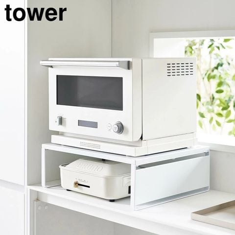 オーブンレンジラック タワー 山崎実業 tower ホワイト ブラック 1442 1443 キッチンラック レンジラック レンジ置き ラック ホットプレート カセットコンロ 収納 キッチン家電 収納 レンジ台 スリム 省スペース おしゃれ シンプル 公式 yamazaki タワーシリーズ[MM1]