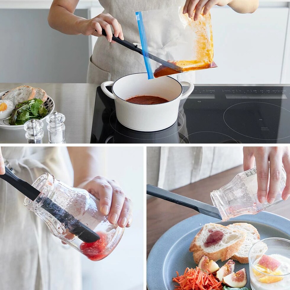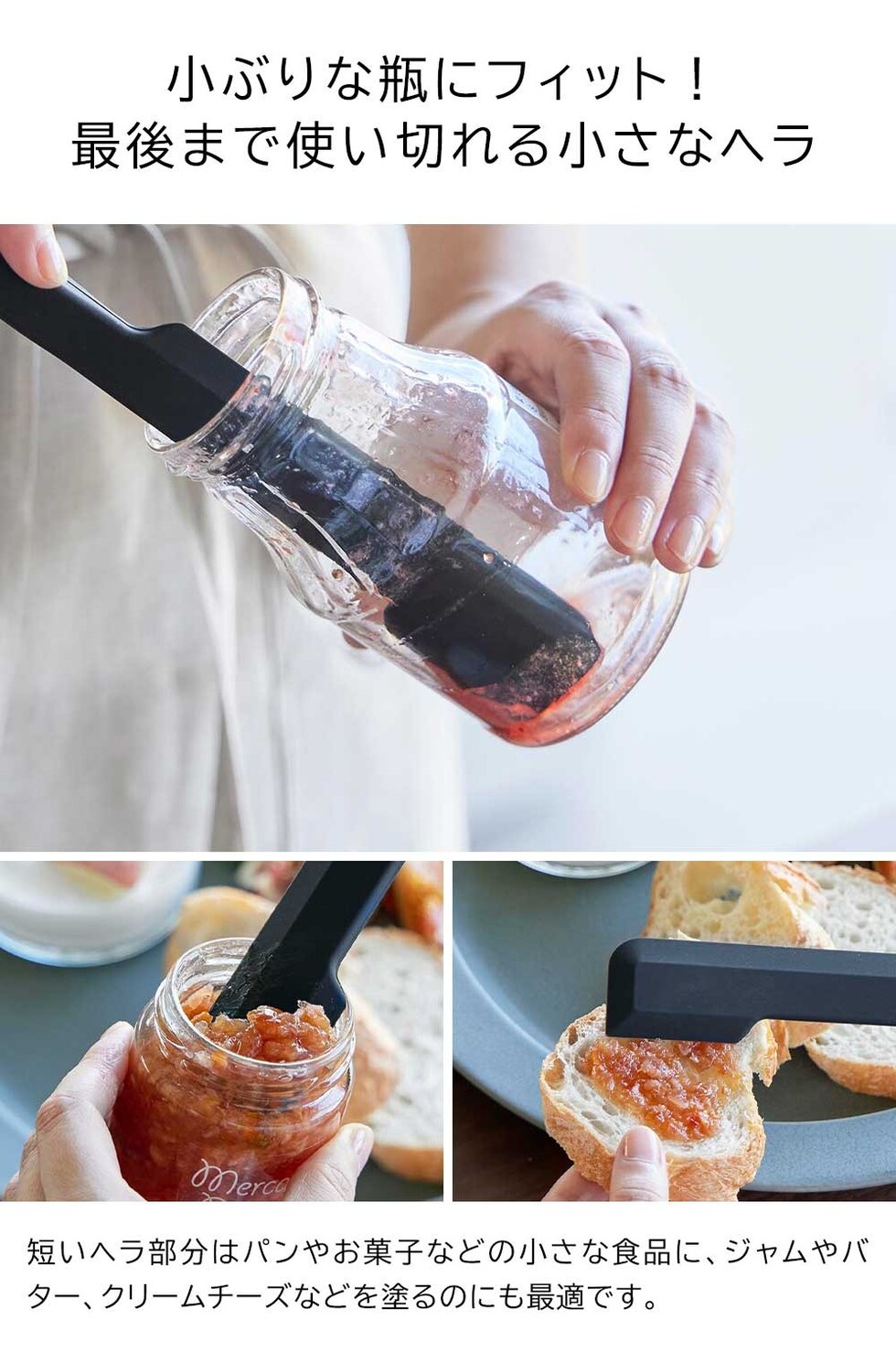 ヘラの形状が左右で異なり シリコーン製でしなやかに曲がり、ボウルや鍋などを傷つけないスパチュラ。 ヘラの長さとカーブが片側ずつ違うので、様々な用途に使えて便利です。 長いヘラ部分は瓶の底や袋の中身を掻き出したり、お鍋やボウルの内側に付いた食材を寄せ集められます。 短いヘラ部分はパンやお菓子などの小さな食品に、ジャムやバター、クリームチーズなどを塗るのに最適です。 小ぶりなジャムの瓶にもフィットし、最後まで使い切れます。 先端が浮くので直置きにならず清潔で、使用する際にも作業台と持ち手の間に指が入りやすく持ち上げやすいです。 食洗機に対応しているので、お手入れ簡単です。 ![]() ![]() ![]() ![]() ![]() ![]() ![]() ![]() ![]() ![]() ![]() |