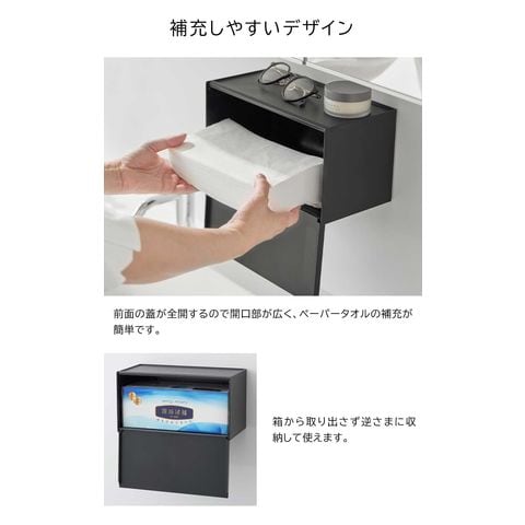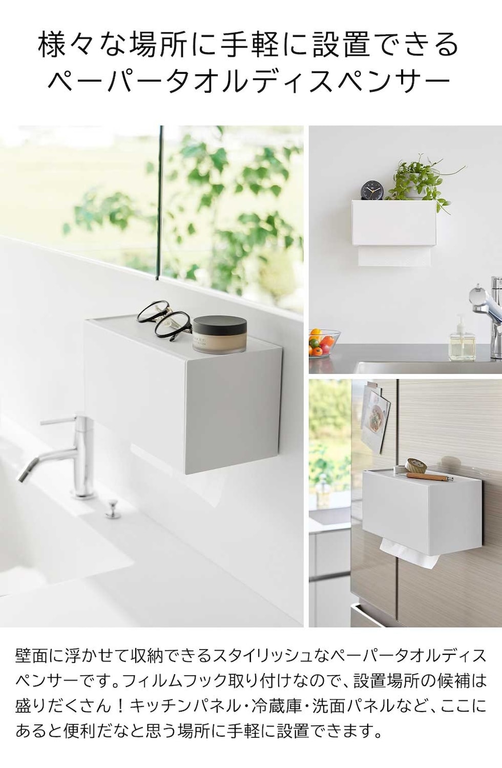 フィルムフックペーパータオルディスペンサー タワー 山崎実業 tower ホワイト ブラック 1377 1378 ペーパータオルホルダー ティッシュボックス キッチンペーパーホルダー 浮かせる収納 壁面収納 スリム おしゃれ シンプル 公式 yamazaki タワーシリーズ[MM1]