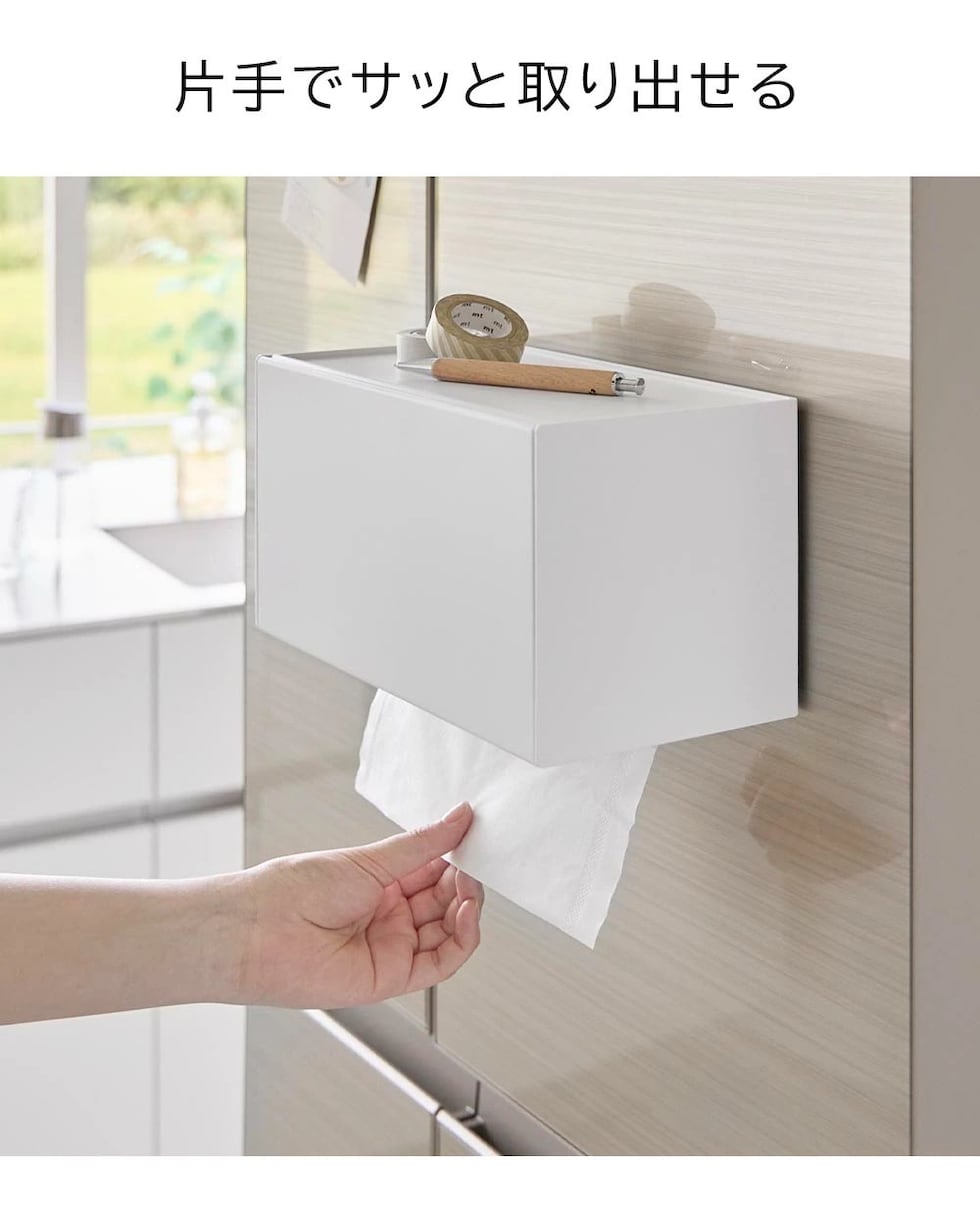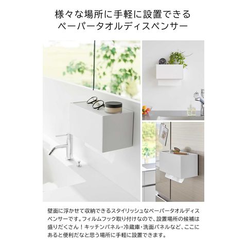 補充が簡単! フィルムフックで取り付けられるペーパータオルディスペンサー。 シンプルでスタイリッシュなデザインなので場所を選ばず設置でき、片手でサッと取り出せます。 ペーパータオル・キッチンペーパー・ティッシュペーパーのボックスやソフトタイプなど、 様々な形状の物をそのまま収納可能です。 前面の蓋が全開するので開口部が広く、ペーパータオルの補充も簡単にできます。 天板はトレーになっているので、小物置きとして使用できて便利です。 ![]() ![]() ![]() ![]() ![]() ![]() ![]() ![]() ![]() ![]() ![]() ![]() ![]() ![]() |