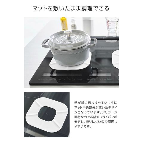敷くだけで IHクッキングヒーターのこげつきやキズを防ぐシリコーン製のマット。 トッププレートの上にマットを敷き、そのまま調理が可能です。 熱が鍋に伝わりやすいようにマット中央部分が空いたデザインとなっています。 シリコーン素材なのでお鍋やフライパンが安定し、滑りにくいので調理しやすいです。 ![]() ![]() ![]() ![]() ![]() ![]() ![]() ![]() ![]() |