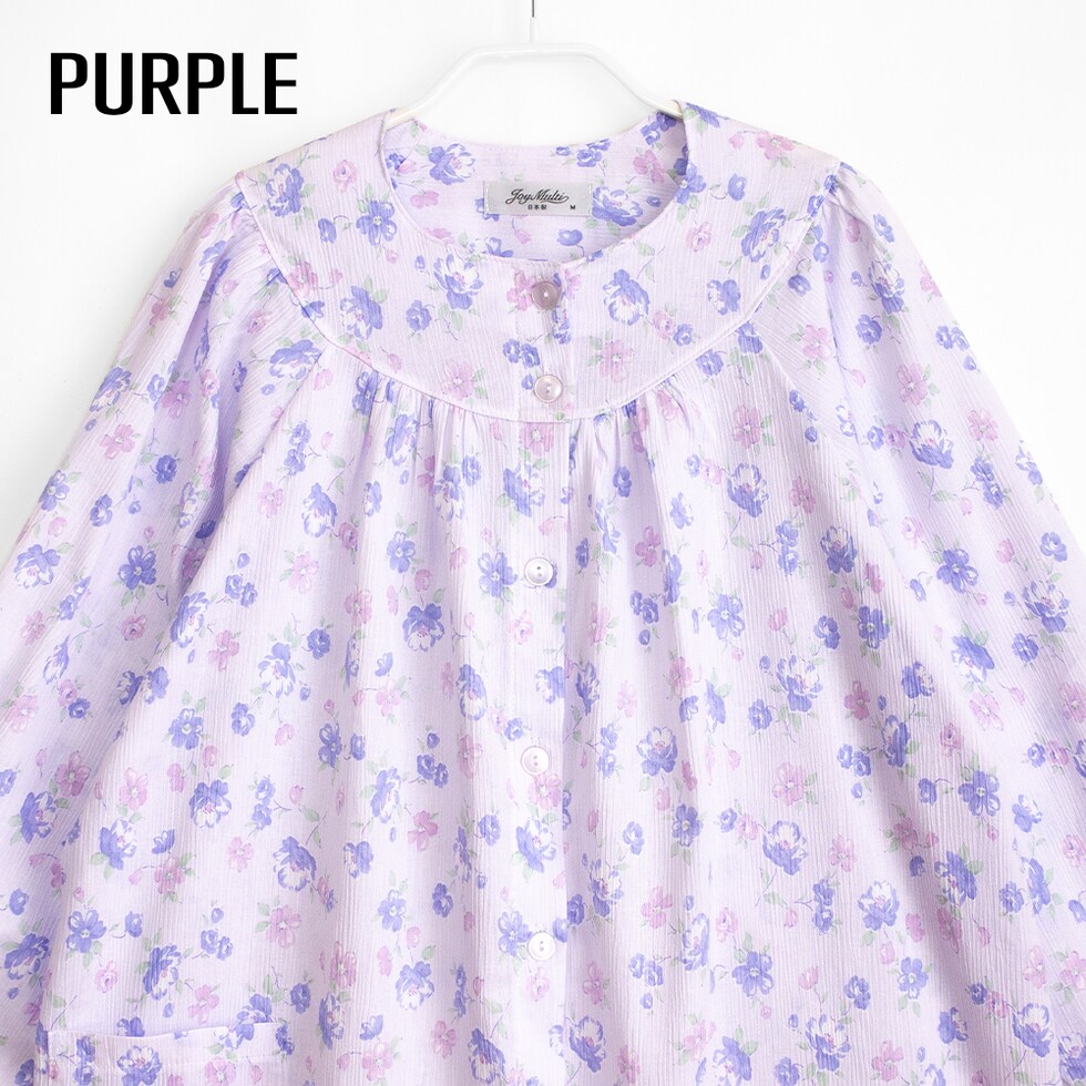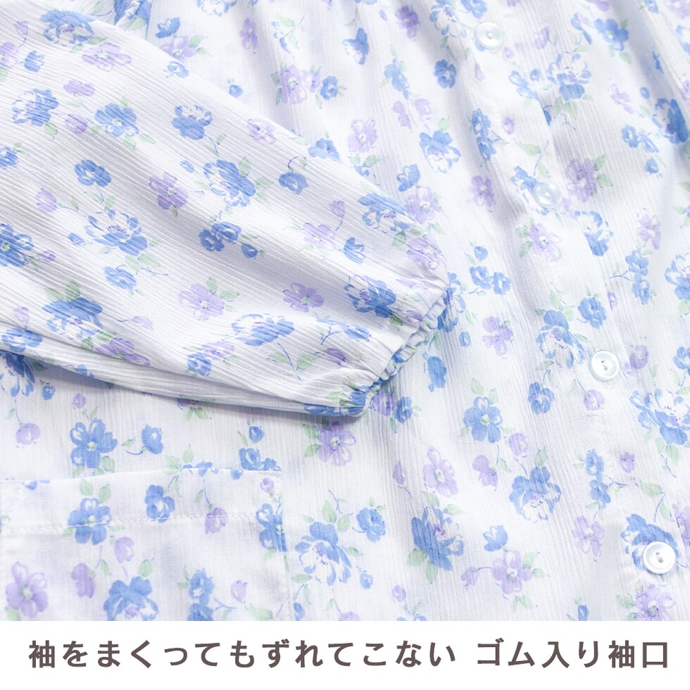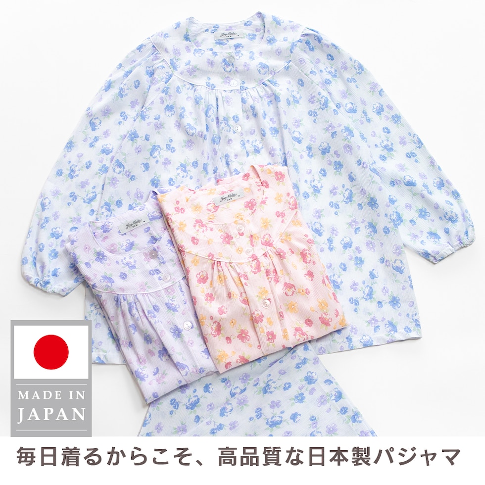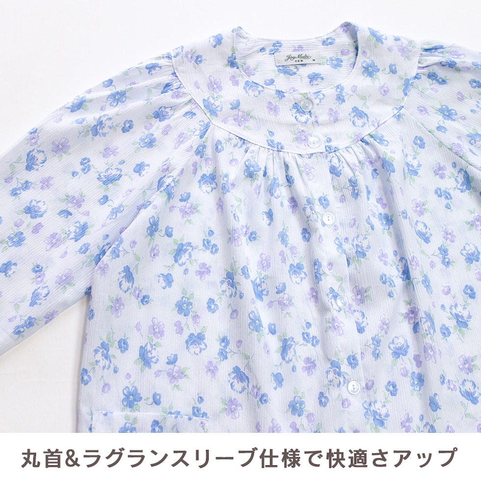 日本製 綿100% 高島ちぢみ レディース パジャマ フェミニン ラグラン 長袖 秋 春 花柄 ピンク サックス パープル S M L LL ギフト 母の日 敬老の日 送料無料のレビュー
