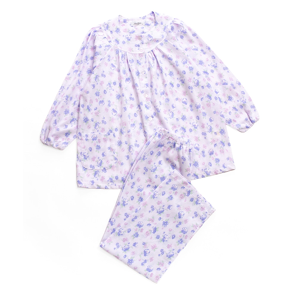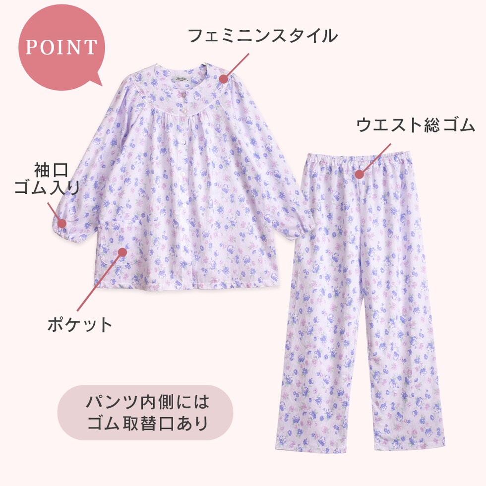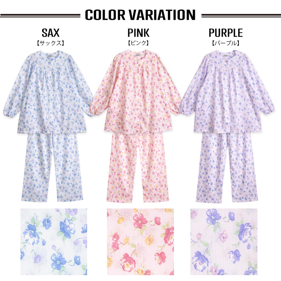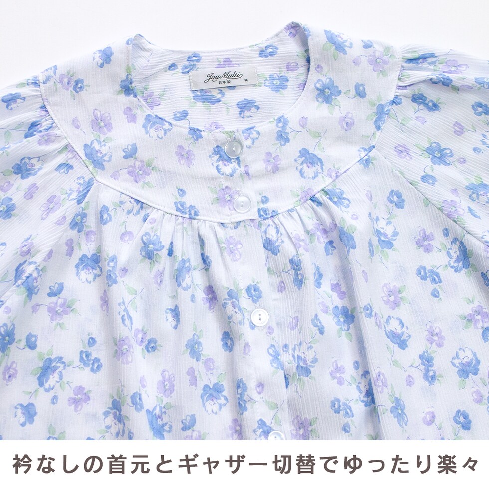 日本製 綿100% 高島ちぢみ レディース パジャマ フェミニン ラグラン 長袖 秋 春 花柄 ピンク サックス パープル S M L LL ギフト 母の日 敬老の日 送料無料のレビュー