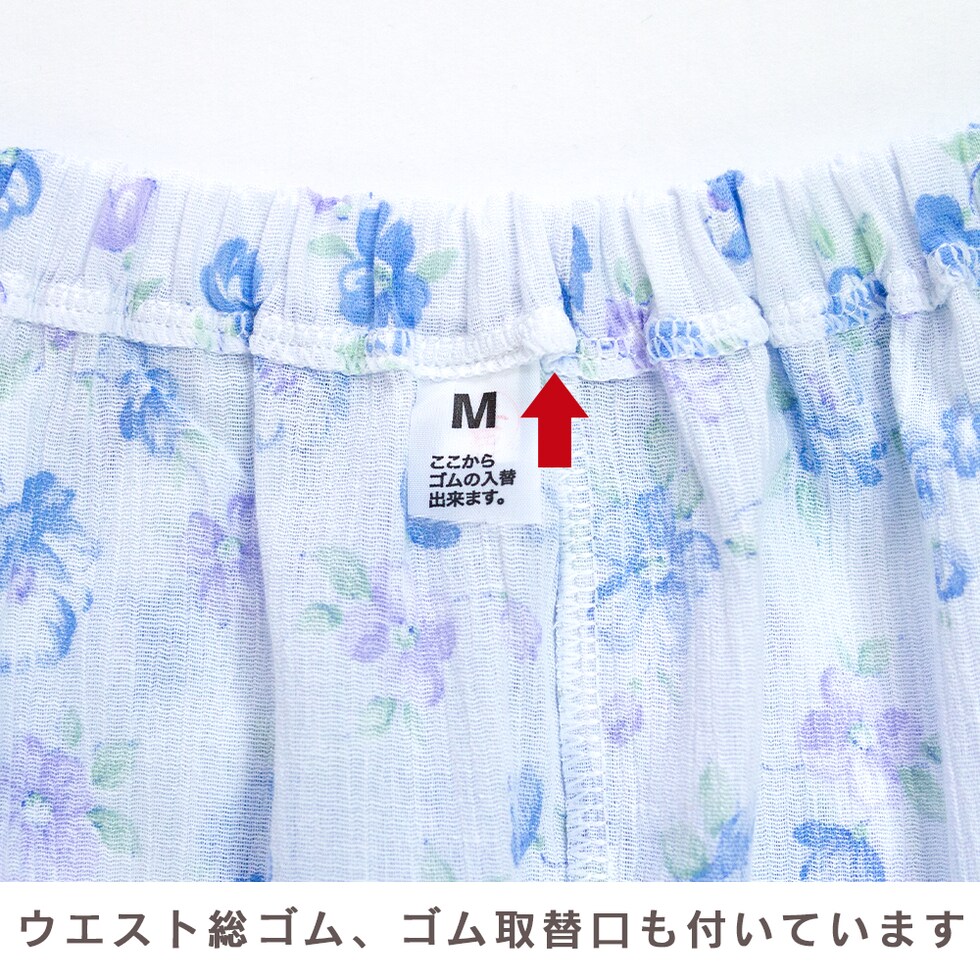 仕 様 トップス仕様 :ラグランスリーブ/袖ゴム/裾ポケット パンツ仕様 :10分丈パンツ/ウエスト総ゴム/ゴム取替口