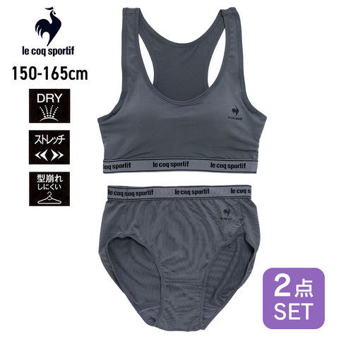 ガールズ インナー ハーフトップとショーツの2点セット 150 160 165 モールドカップ ブラ le coq sportif ルコックスポルティフ ドライ ストレッチ 紫外線カット チャコール