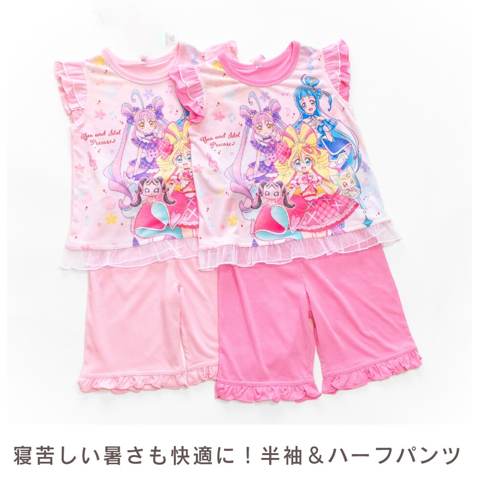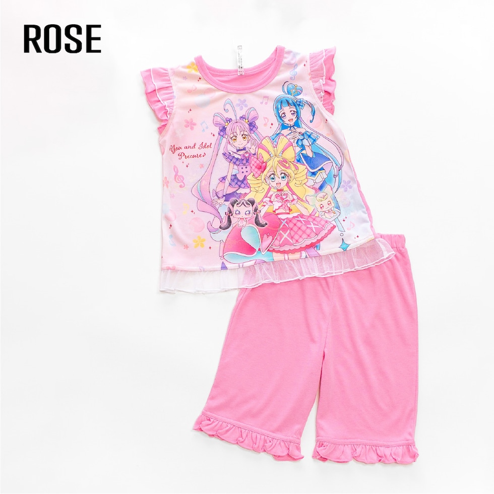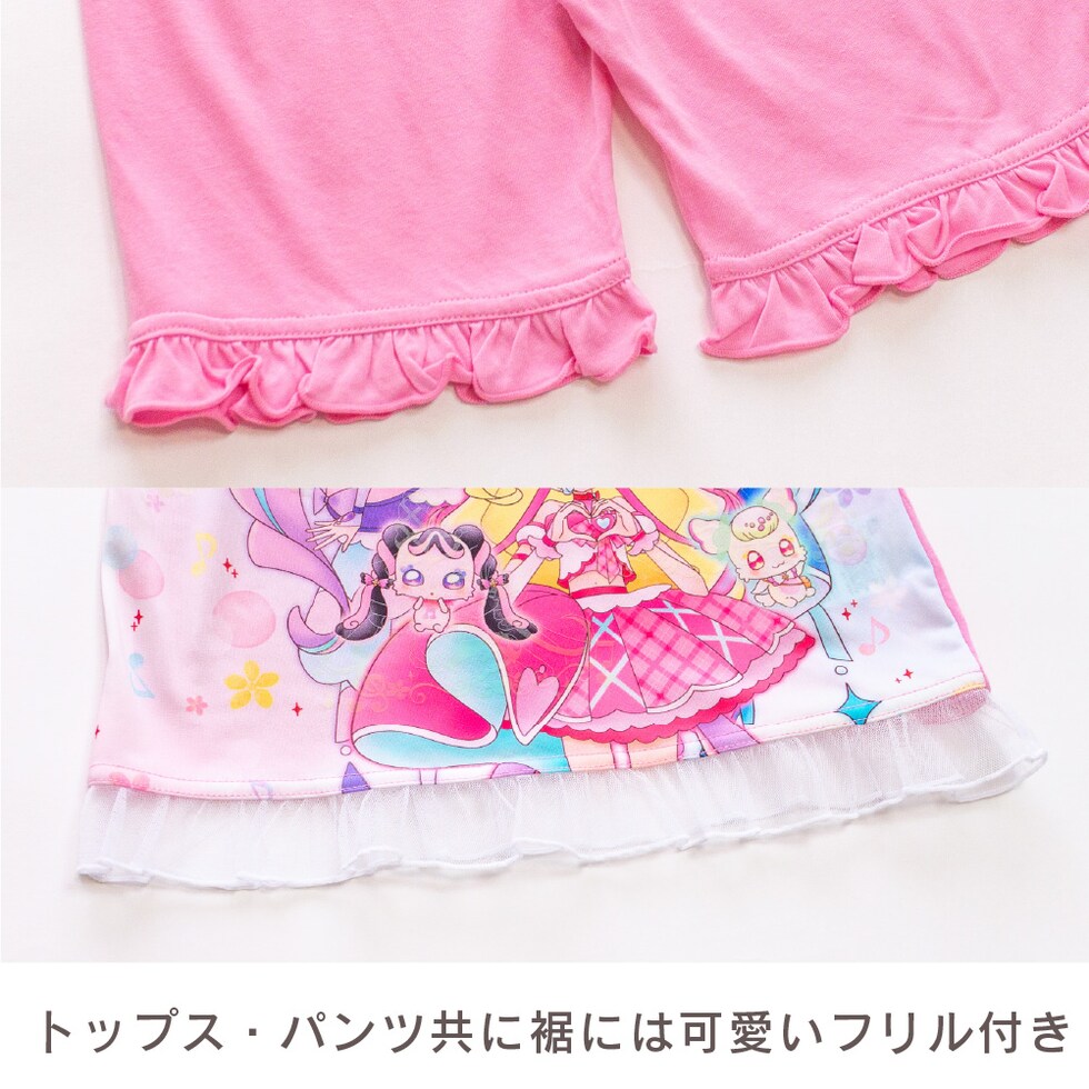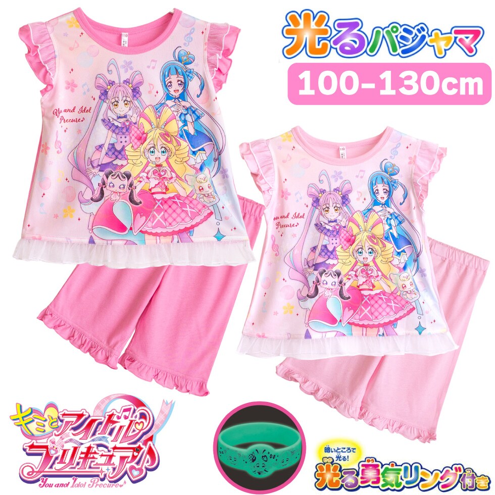 キミとアイドルプリキュア B柄 ガールズパジャマ 勇気がでる!光るパジャマ 暗いところで光る 光る勇気リング付き 女の子 半袖 薄くて軽い!快適Tシャツ素材天竺 100 110 120 130 ピンク ローズ プリキュア