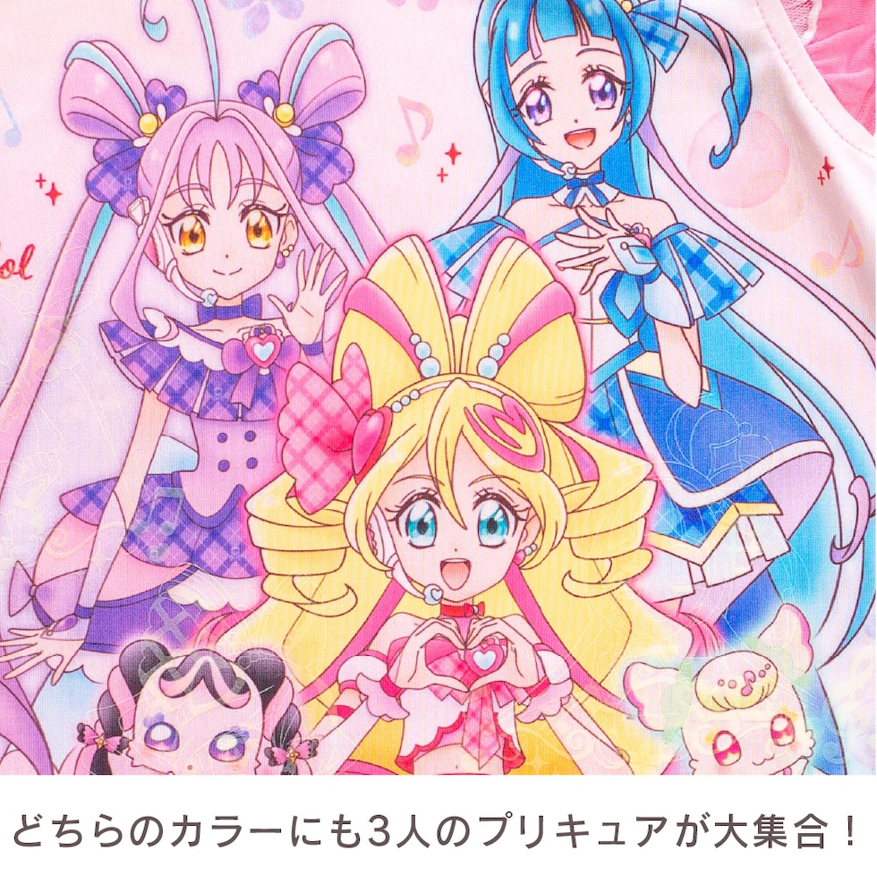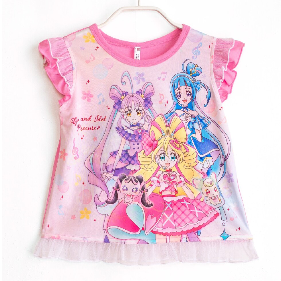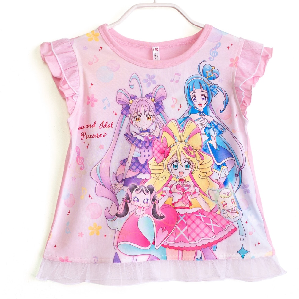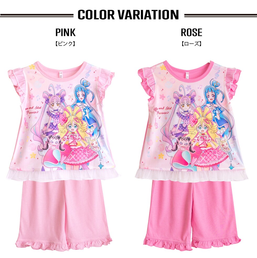 キミとアイドルプリキュア B柄 ガールズパジャマ 勇気がでる!光るパジャマ 暗いところで光る 光る勇気リング付き 女の子 半袖 薄くて軽い!快適Tシャツ素材天竺 100 110 120 130 ピンク ローズ プリキュア