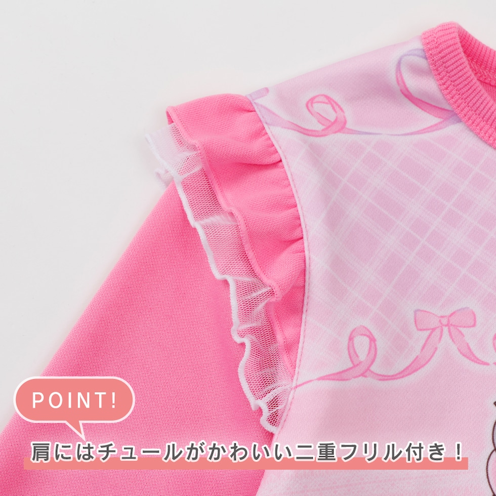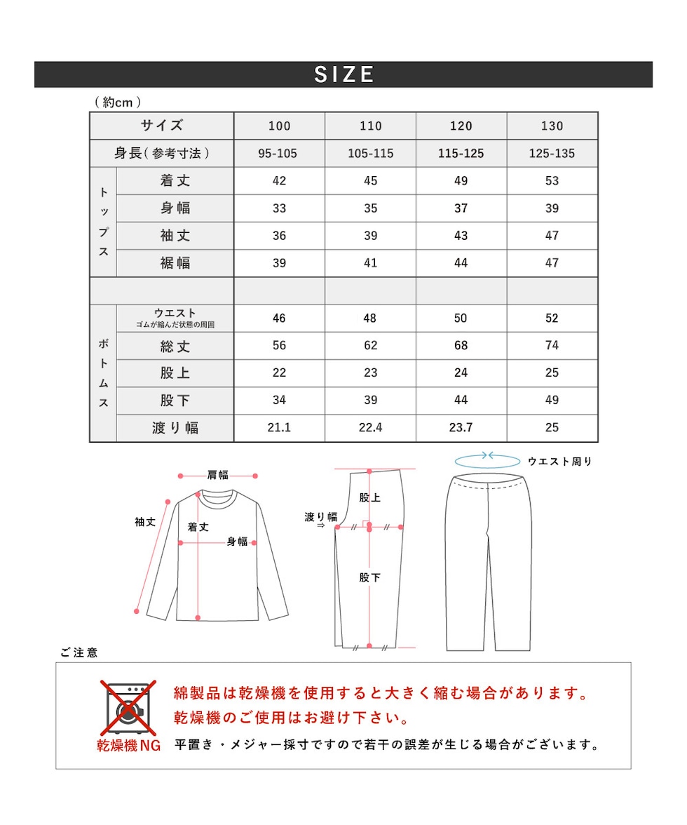トップス仕様:長袖/衿ぐりリブ/光るプリント/肩ダブルフリル パンツ仕様 :長パンツ/ウエスト総ゴム/ゴム取替口 |