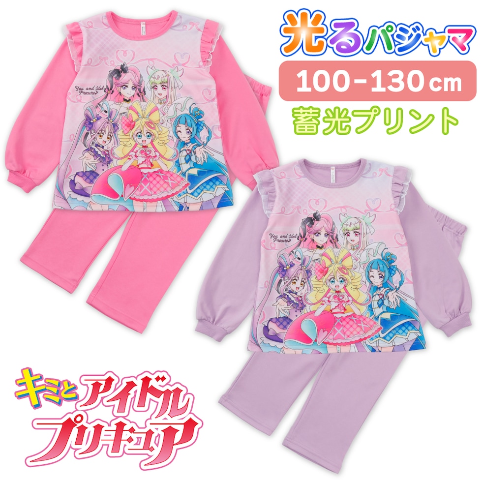 キミとアイドルプリキュア 寝ても覚めても光るパジャマ 100 110 120 130 女の子 ガールズ 長袖 スウェット ルームウェア ローズ ラベンダー ギフト プレゼント 修学旅行 林間学校 お泊り 旅行