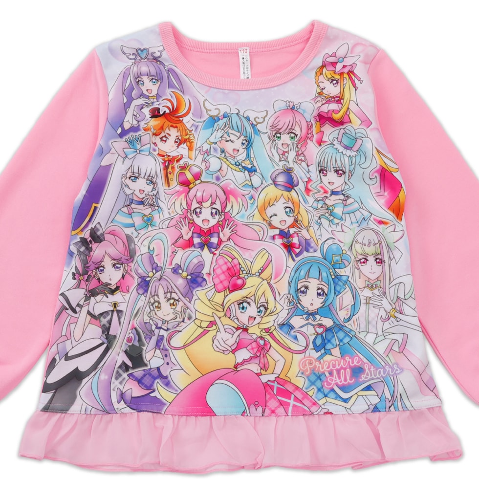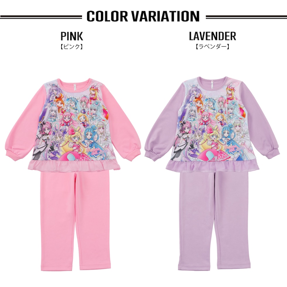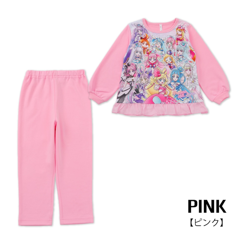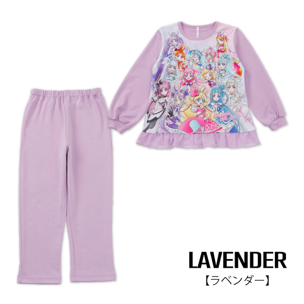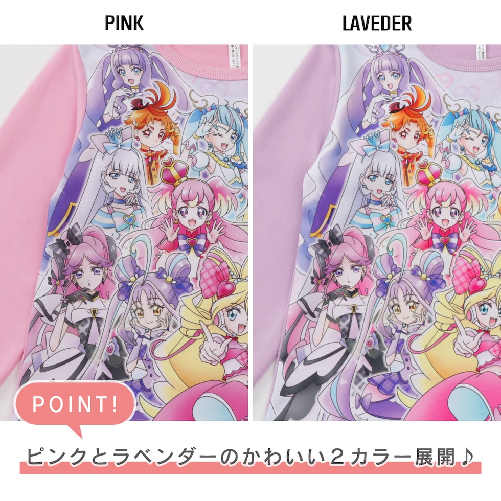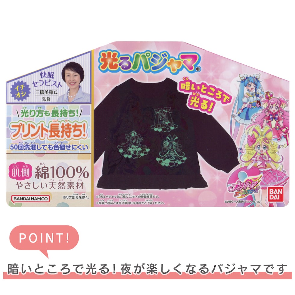 プリキュアオールスターズ 寝ても覚めても光るパジャマ 100 110 120 130 女の子 ガールズ 長袖 スウェット ルームウェア ピンク ラベンダー ギフト プレゼント 修学旅行 林間学校 お泊り 旅行