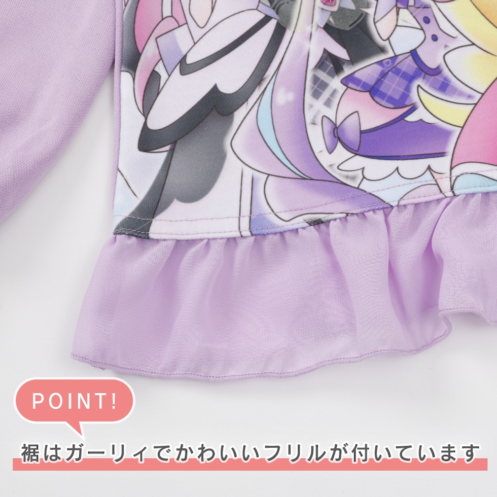 トップス仕様:長袖/衿ぐりリブ/光るプリント/裾フリル パンツ仕様 :長パンツ/ウエスト総ゴム/ゴム取替口 |