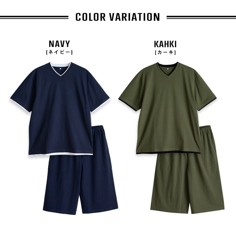 トップス仕様:半袖/二重配色 レイヤードスタイル パンツ仕様 :ハーフパンツ/ゴム取替口脇ポケット |