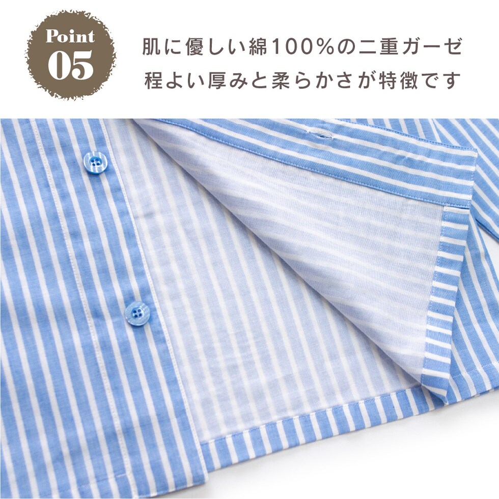 | 関連ワード | 前開き シャツ 長袖 春 秋 綿100% ダブルガーゼ 2重ガーゼ コットン おそろい リンクコーデ |