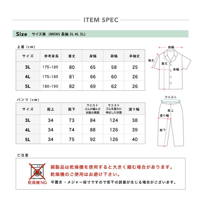 トップス仕様:半袖/テーラー/パイピング仕様/胸ポケット有り パンツ仕様 :長パンツ/ウエスト総ゴム/前開き/ゴム取替口 |