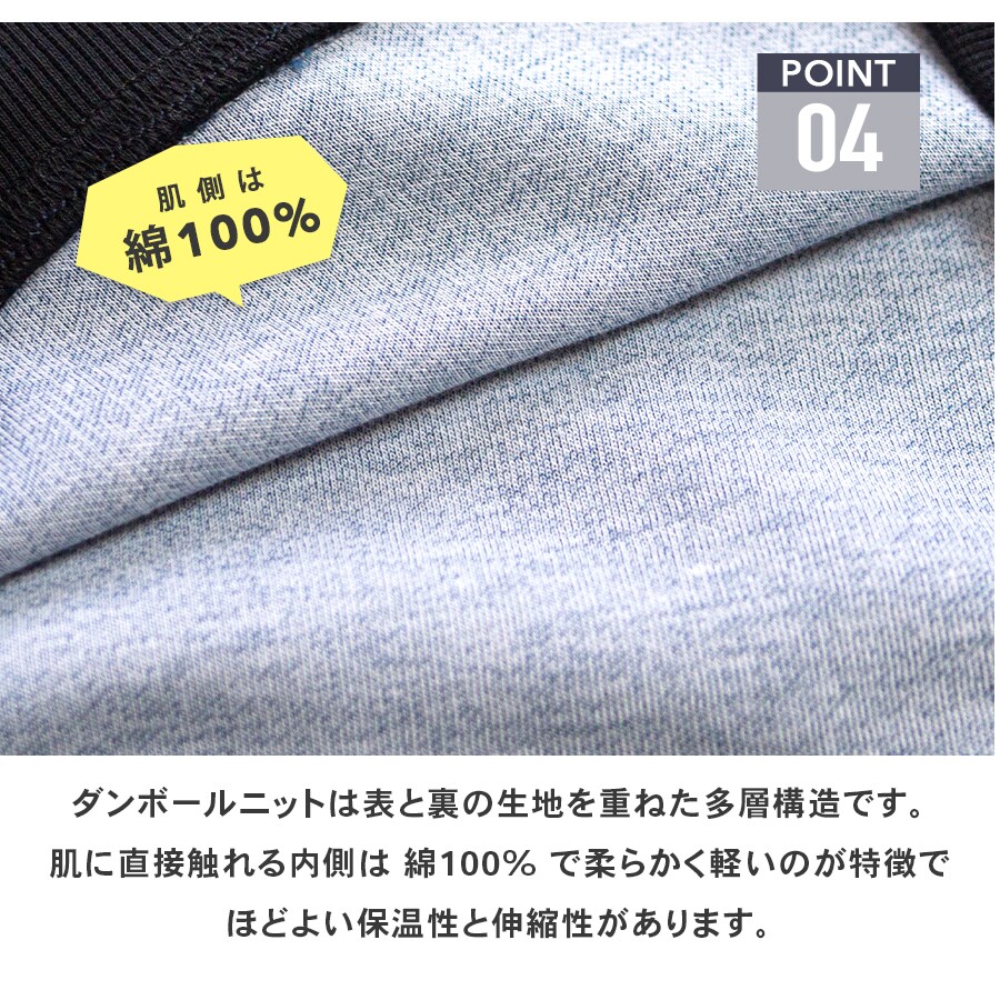 表側:ポリエステル100% 裏側:綿100% リブ:ポリエステル95%/ポリウレタン5% |