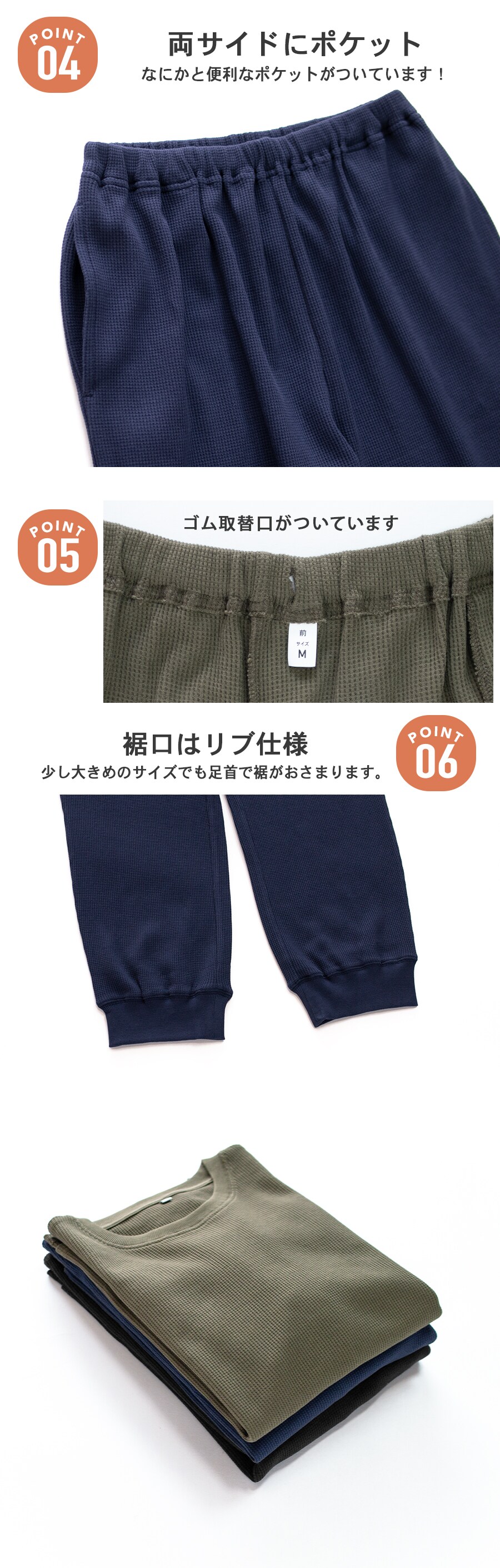 関連ワード ルームウェア 部屋着 パジャマ 長袖 春 秋 ワッフル サーマル ハニカム 綿100% コットン 紳士 MENS 親子 おそろい リンク リンクコーデ プレゼント