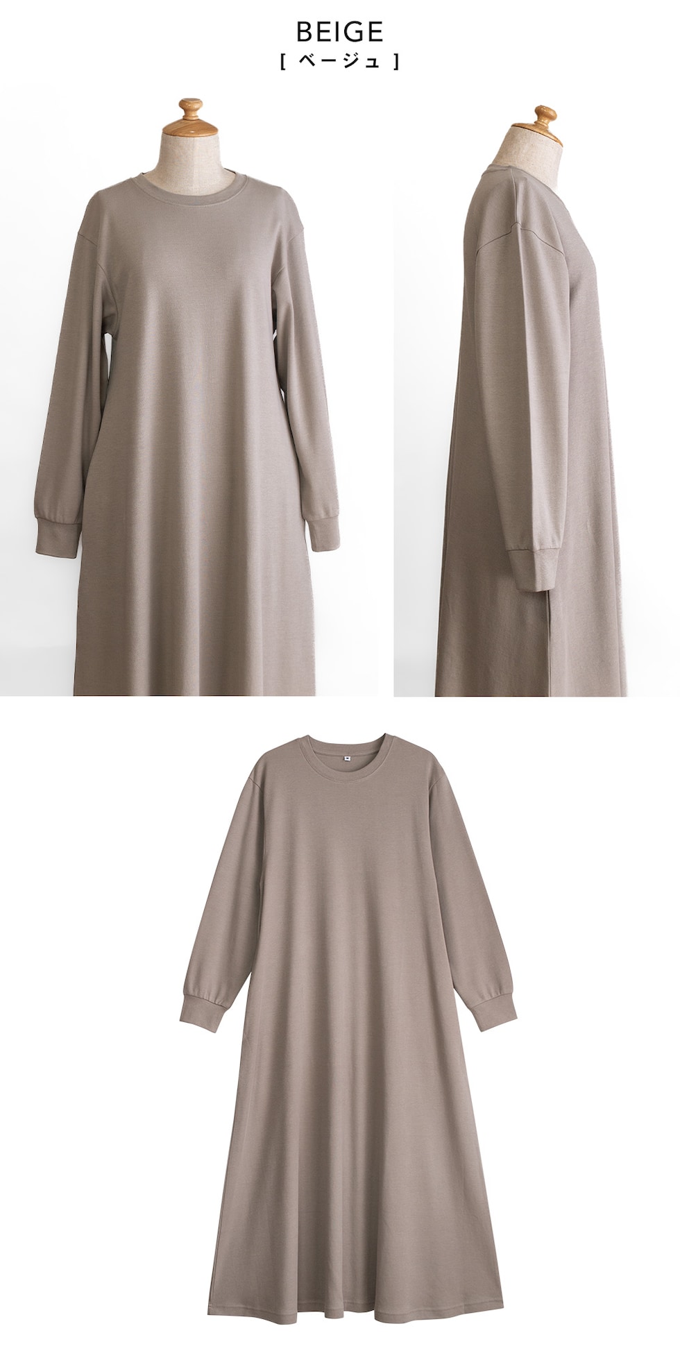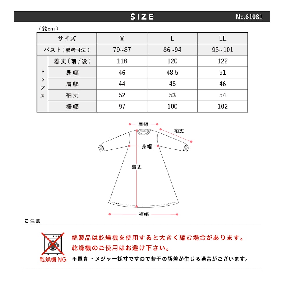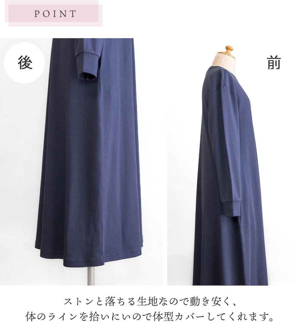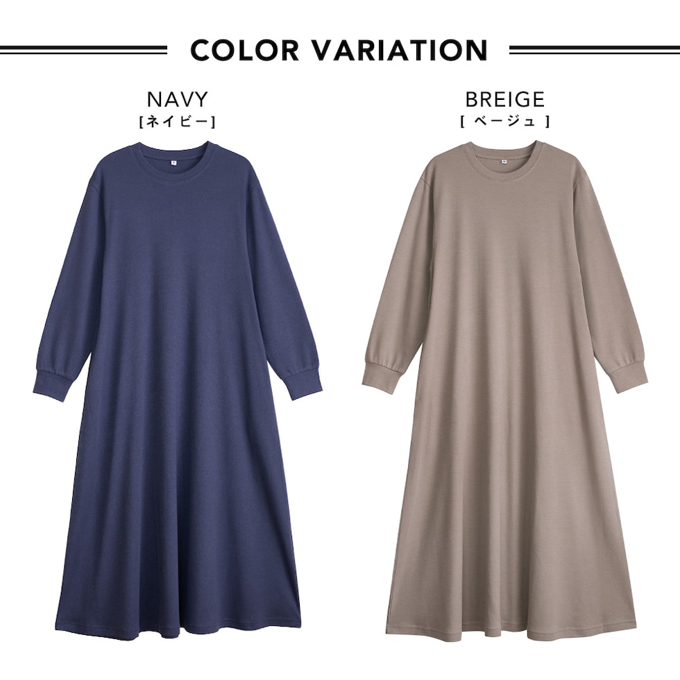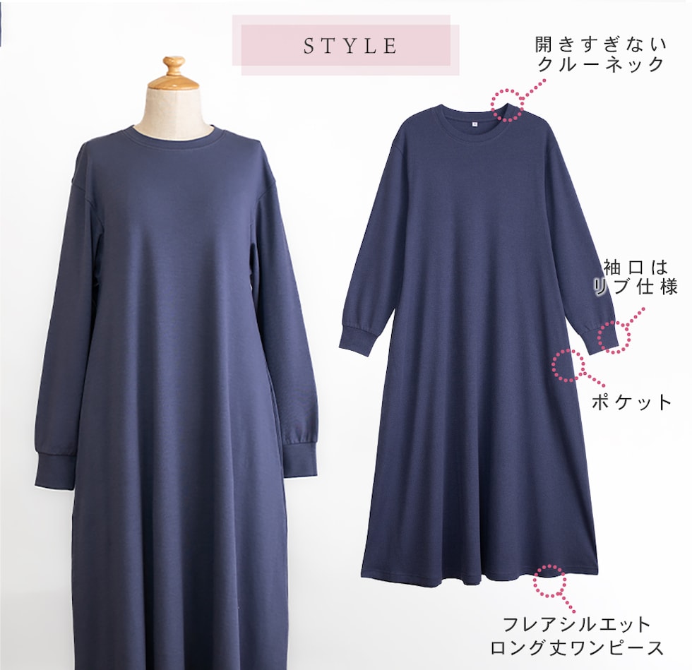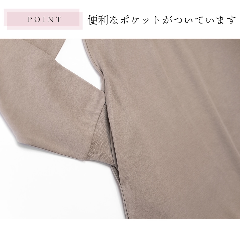トップス仕様:長袖/ロング丈ワンピース/脇ポケット |