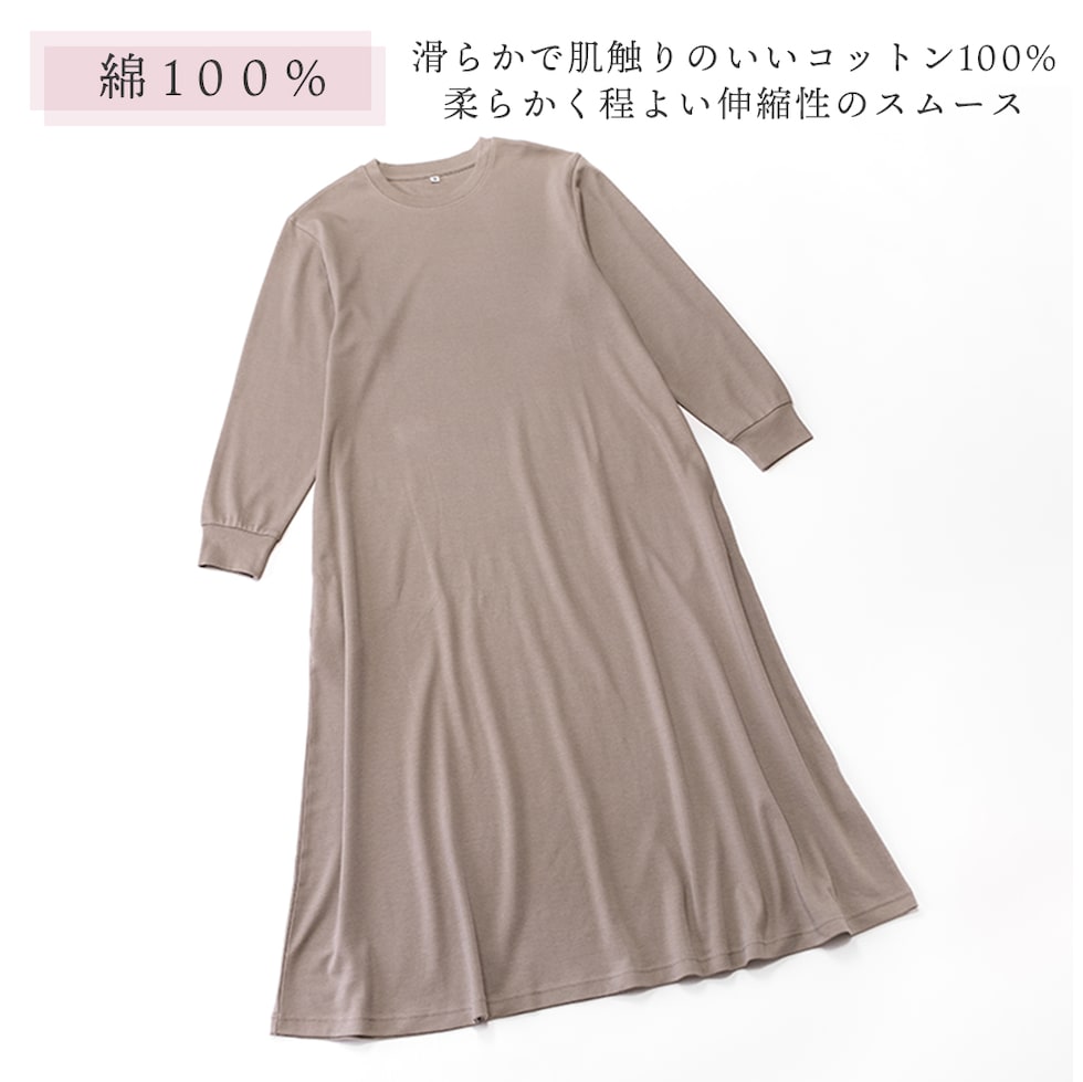 パジャマ レディース 綿100% 長袖 春 夏 柔らかい少し薄手 スムース ロング丈ワンピース M L LL 部屋着 ルームウェア プレゼント 母の日