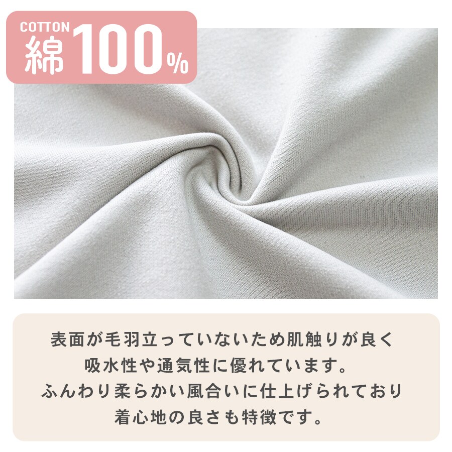 毛玉ができにくく適度な伸縮性のある滑らかな肌触りの生地で、 内側はループ状になっており吸湿性や保温性にすぐれています。