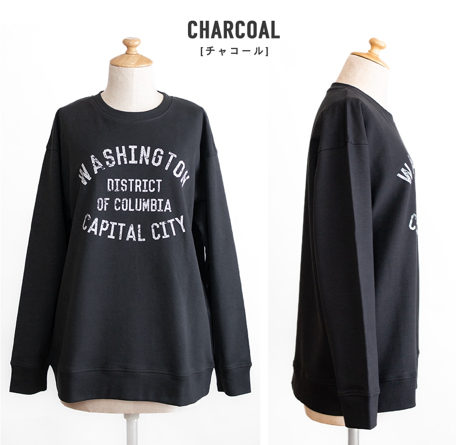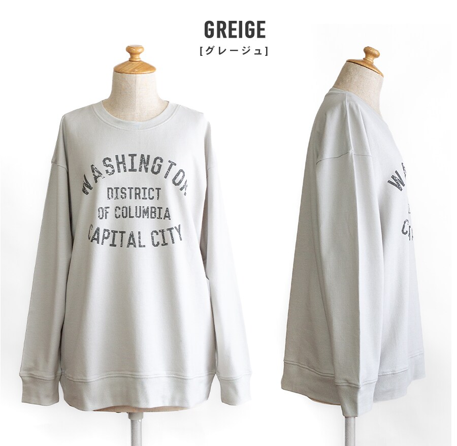 スウェット ルームウェア パジャマ レディース 綿100% 長袖 春 秋 初冬 ロゴプリント フレンチテリー 裏毛 サイドポケット チャコール グレージュ M L LL 3L 61824