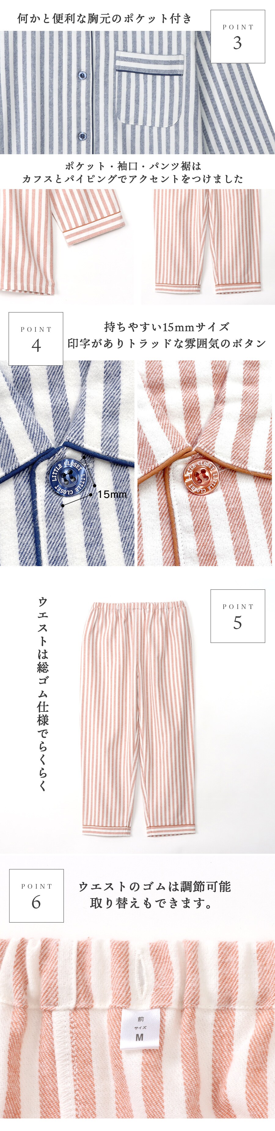 パンツ仕様 :長パンツ/ウエスト総ゴム/ゴム取替口