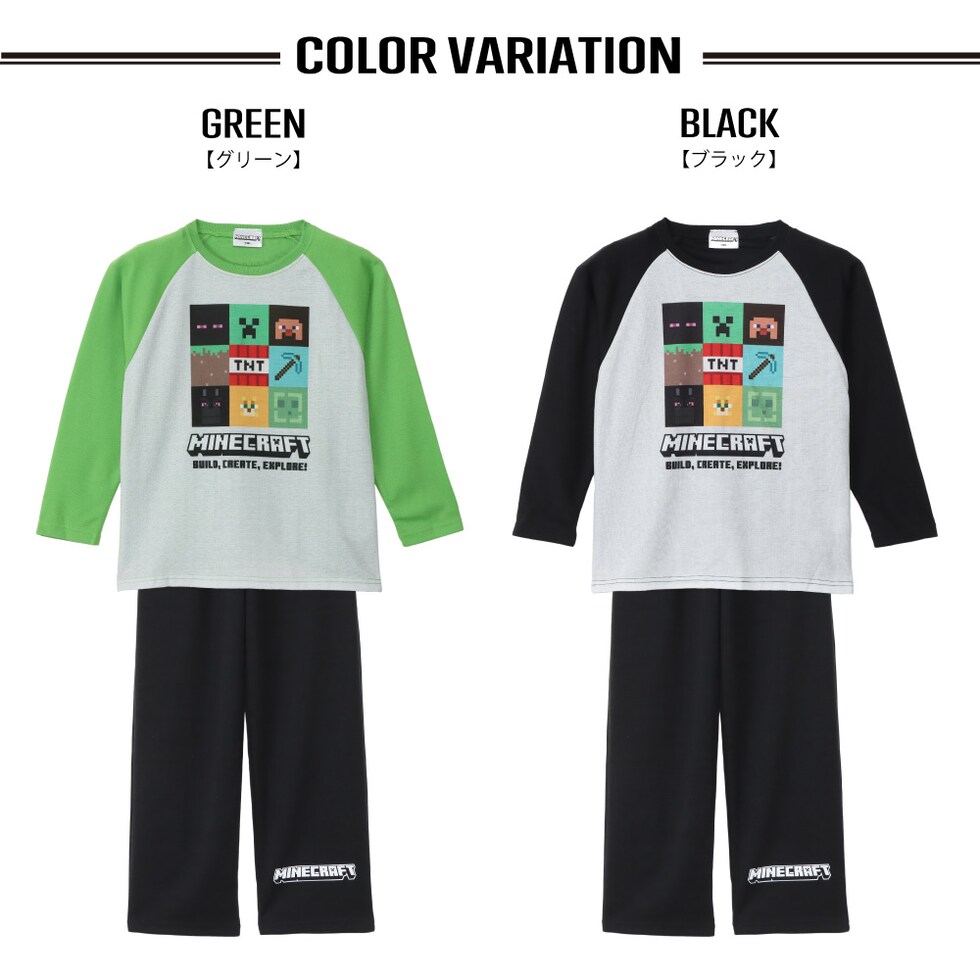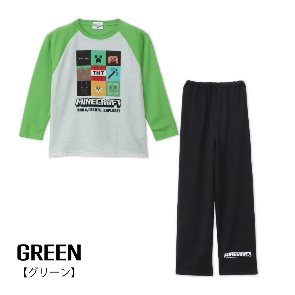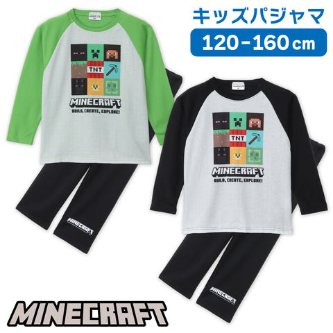 マインクラフト キッズパジャマ ボーイズ TCダンボール 長袖 春 秋 グリーン ブラック 120-160 66556ah