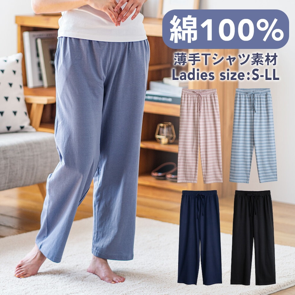 ルームパンツ レディース 綿100% パジャマ 春 夏 柔らかく軽い薄手の快適Tシャツ素材 S M L LL 3L 部屋着 ルームウェア おそろい メール便なら 送料無料